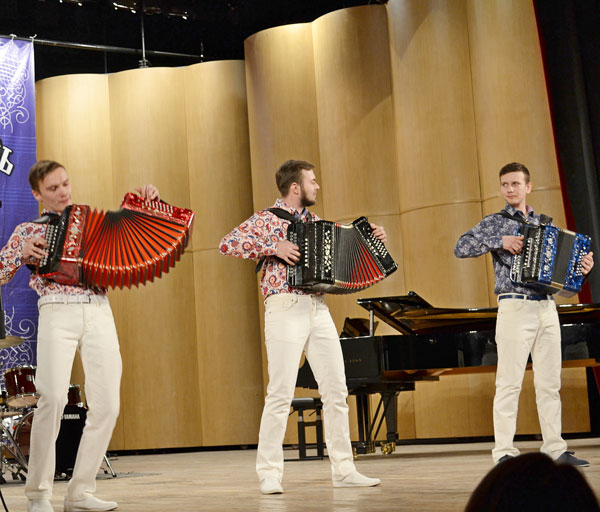 Песенную лирику сменили сольные выступления инструменталистов, представивших новейшие сочинения для баяна. Исполнение одного из них – Сонаты № 4 Fusion профессора Гнесинской академии Вячеслава Семёнова – было объявлено мировой премьерой. Явственно чувствовалось: это произведение, улавливающее актуальные ритмы, гармонии, интонации XXI века. Что и подчеркнул в своем исполнении лауреат международных конкурсов Лев Лавров, уже снискавший известность как яркий интерпретатор новых сочинений для баяна и как профессионал, умеющий раскрыть художественные и технические возможности инструмента во всей их полноте. Еще один талантливый музыкант, лауреат II Всероссийского конкурса исполнителей на народных инструментах Кирилл Русинов представил на концерте «Тарантеллу» Ф. Листа в транскрипции того же Вячеслава Семенова. Блестящая фантазия автора парафраза и мастерское исполнение сделали свое дело: опус стал украшением программы, подтвердив немалые возможности баяна в освоении классического репертуара.
