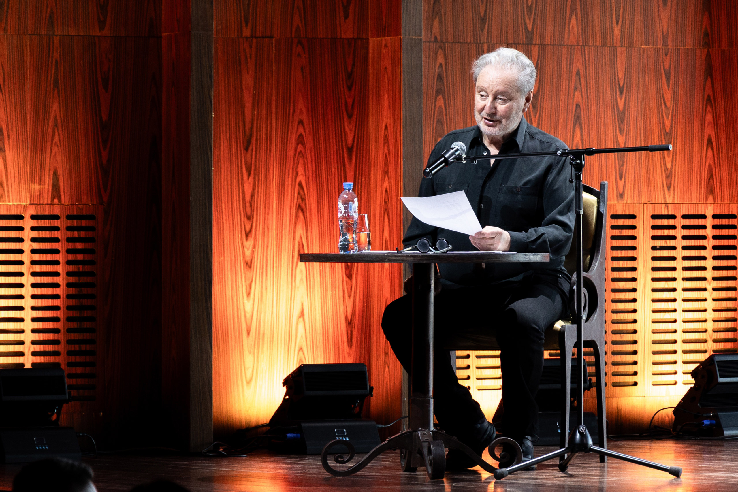 Специальным гостем был Вениамин Смехов, читавший стихи обэриутов. Спросят: а при чем тут обэриуты? При том, что именно на их стихи написан Десятниковым первый из звучавших в этот вечер – и один из самых у него известных – вокальный цикл «Любовь и жизнь поэта». Его в сопровождении Алексея Гориболя исполнил Сергей Годин. Этот тенор в последнее время нередко становится мишенью для критики, поскольку, не имея настоящей вокальной школы, зато имея многочисленные проблемы со звукоизвлечением, берется за все – хоть за барокко, хоть за бельканто, хоть за Моцарта… С Десятниковым, впрочем, Годин в целом справился неплохо. Правда, соответствующей стилистикой он успел овладеть лишь отчасти, а времени на доработку вместе с Гориболем было, судя по всему, явно недостаточно. Главной же проблемой оказалось то, что было не разобрать большей части слов – и это в текстах обэриутов… Но, в конце-то концов, много ли сегодня найдется у нас певцов, готовых учить и петь современную музыку? Так что стоит быть благодарными и за такой полусырой вариант.