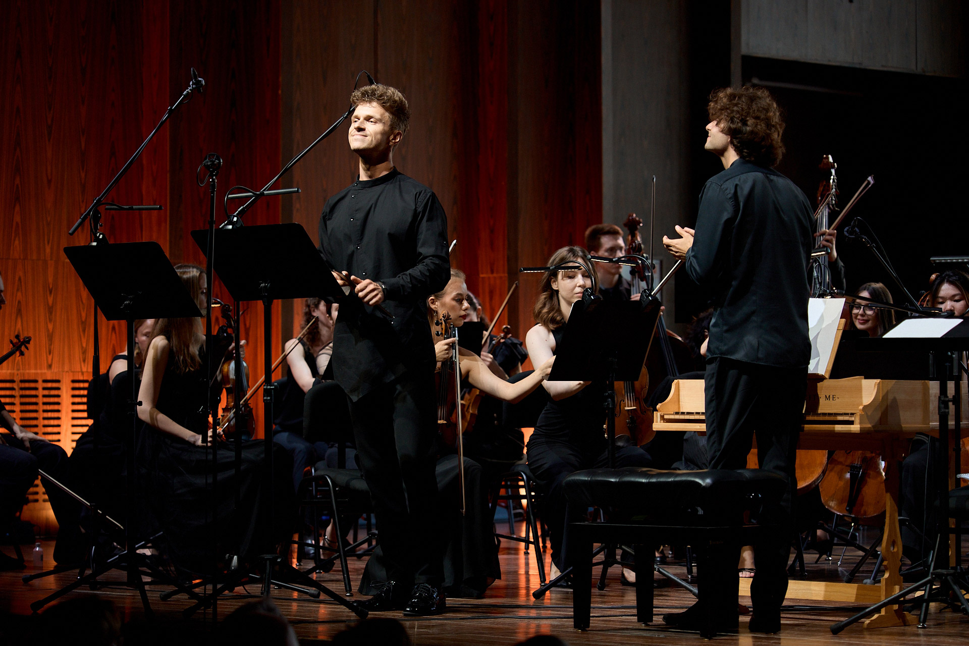«Идиш» прозвучал в сопровождении струнного квартета, а сюита «Закат» – фортепианного квинтета с участием Гориболя. Все инструменталисты входят в постоянный состав La voce strumentale. И все без исключения были хороши. Особо хотелось бы выделить скрипача Андрея Оганесова, принимавшего участие в квинтете «Закат». Если музыкант такого уровня – прямо скажем, международного – продолжает работать в оркестре, это тоже немало говорит о качестве последнего.