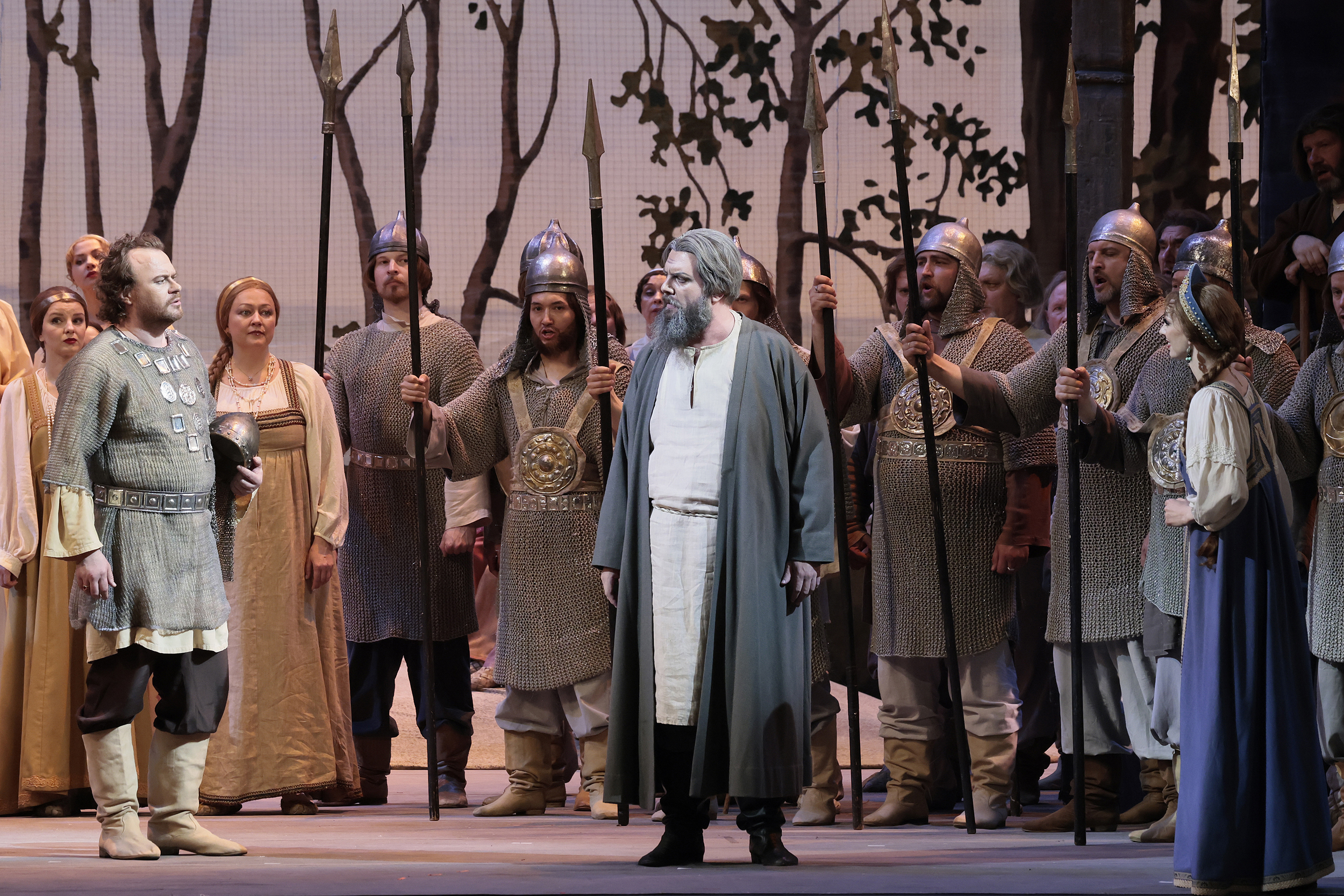 И в традиционной, и в современной версии оперы выступили одни и те же солисты. Красивому легкому сопрано Анны Денисовой – Антониде порой не хватало тепла и точно не хватало драматизма в третьем действии: все же эта партия написана для более плотного и глубокого лирического сопрано. Ваня Екатерины Сергеевой отличался травестийным правдоподобием, ясной дикцией и в целом выразительным пением, только вот голос певицы – едва ли контральто, поэтому ему объективно было сложно полноценно озвучить многие низкие ноты. Сергей Скороходов героически спел все, что полагается в партии Собинина, включая голосоломную арию «Братцы, в метель», однако экстремальные верхние ноты ему давались через раз. Безупречным оказался Станислав Трофимов в заглавной партии, создавший степенный образ народного героя, радуя правдивостью и теплотой интонации. Хор и оркестр театра демонстрировали чудеса одухотворенности и понимание стилистики русского бельканто. Коллективы Мариинки (помимо хора и оркестра, также кордебалет) – самое сильное впечатление гастрольных показов.