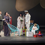 Вопрос не риторический. В «Геликоне» может быть все. Если Аиду превратили в гадюку, то от кардинальных метаморфоз и прочие персонажи не застрахованы. Но на этот раз попытки как-нибудь позаковыристей раскрасить образ Баттерфляй прошли по касательной, и легкомысленной стрекозой трепетная бабочка не стала. Возможно, благодаря присутствию в спектакле итальянского дирижера Марко Боэми, далекого от экспериментов с оригиналом (чему косвенное подтверждение – его многолетнее сотрудничество с оперным театром в Казани, имеющим репутацию оплота традиционализма). Боэми «сделал» отличный оркестр и явно проследил за верностью вокальной команды стилю и духу Пуччини. Кто-то ему так и не поддался, но героиня в исполнении молодой Валентины Правдиной вышла на загляденье. И партия певице по голосу – сильному, полетному, объемному, и лавирует она между фортиссимо и пианиссимо ловко, и фразировка на высоте, и ансамблевая чуткость в наличии. К финалу певица подустала. А все одно в разы оказалась органичнее вычурного антуража, в который поместили умирать ее Баттерфляй. Забыть это нельзя: на лестничной конструкции, собственноручно развернув ее к залу, уселись зрителями все действующие лица, чтобы в роковую минуту «затрепетать» ладонями, будто крылышками; в пруд, разлитый в каком-то корытце, к белым птичкам-оригами вошла героиня, чтобы за смертной чертой вознестись вместе с корытцем к небу на выдвинувшемся из сценических недр «пьедестале почета». И впридачу – красный холодильник, по которому в аффектации бьет Пинкертон и за которым в очередной раз проливает крокодиловы слезы его половина.