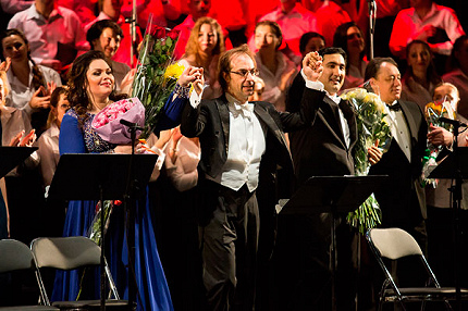 При живом знакомстве с оперой Джордано кажется, что шанс у нее есть – восторгам публики не было предела! Но оправданы ли они? В целом вряд ли, невзирая на добросовестность оркестрового, хорового и ансамблевого исполнения. В тандеме с хормейстером Марией Чекръкчиевой темпераментный, великолепно ощущающий мощный нерв этой музыки маэстро ФабиоМастранджело делает все возможное (и невозможное тоже), чтобы «правда жизни» во многом «опереточного» либретто Л. Иллики (пусть и основанного на трагическом сюжете эпохи Великой французской революции) воспринималась правдой хотя бы музыкальной. Но пройти путь правды в музыке до конца дирижеру не позволяет отсутствие харизматичных вокальных имен.