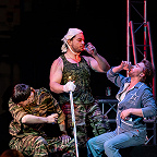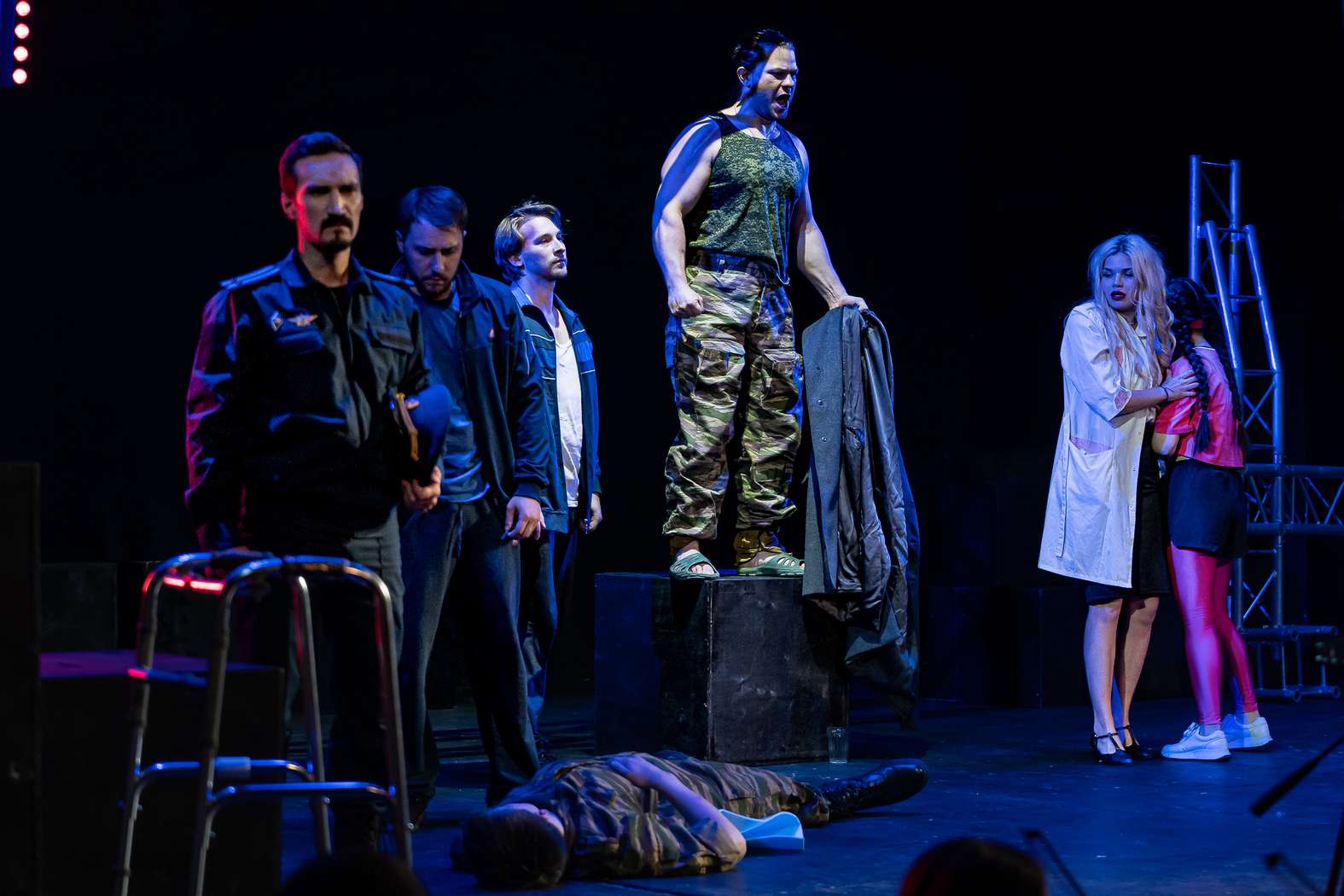 В проекте целенаправленно заняты лишь молодые певцы – даже в ролях стариков, что порой носит откровенно комический эффект. Среди тех, кто уже соответствует высокой планке оперного солиста по комплексу своих умений, стоит отметить баритона Георгия Синаревского в главной партии, мужественно спевшего ее все три фестивальных вечера (спектакли шли подряд). Его лирический в своей основе голос красивого тембра был очень привлекателен в самых разных музыкально-драматических ситуациях. Также немалое впечатление оставили Элина Рихтер (Клавдия) с ее томным меццо, звонкое сопрано Байирты Бадма-Халгаевой (Анюта), зычный тенор Николая Маланова (Дед Михайло), выразительный бас Данила Литвинова (Андрей). В ролях Василия Васильевича и Полковника выступил знаменитый бас «Геликон-оперы» Григорий Соловьев, чей мощный голос органично живописал героев больших волевых качеств.