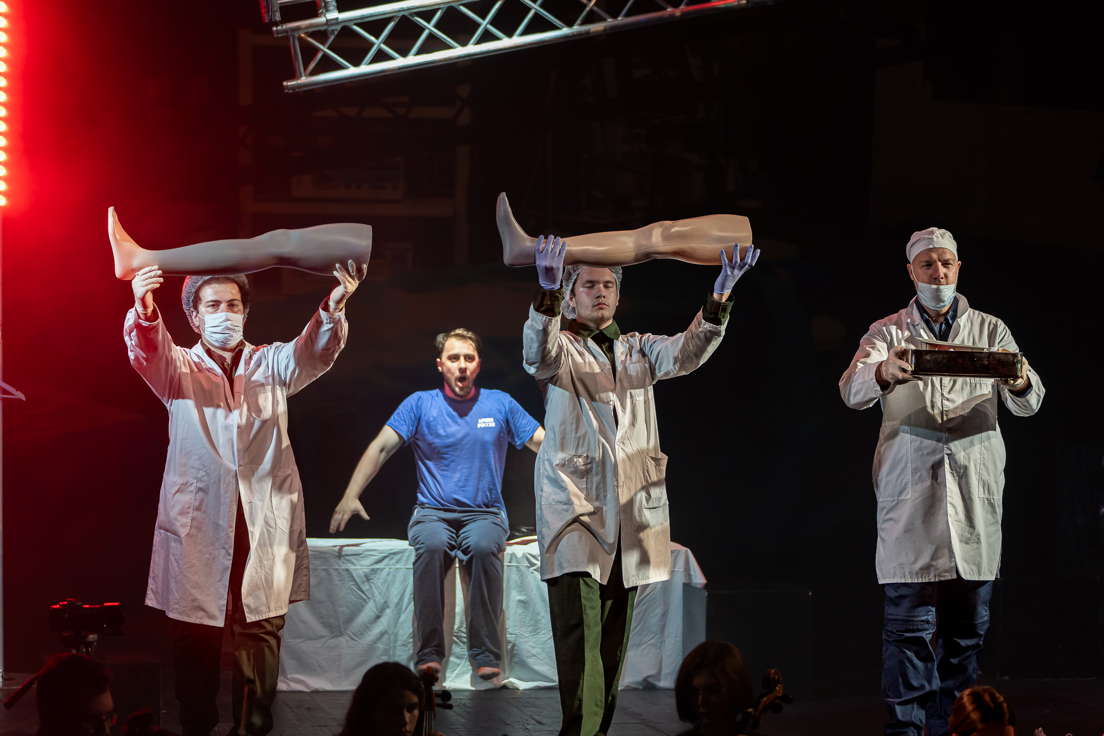 Условия центра «На Страстном», конечно, не слишком благоприятны для постановки большой советской оперы. Маленький зал с несовершенной акустикой; оркестр, сидящий не в яме, а у сцены в партере, создает нешуточную звуковую стену, особенно в драматических кульминациях, – продираться сквозь нее вокалистам совсем непросто, а несовершенная подзвучка указанных проблем не может решить. Звуковой баланс между сценой и условной ямой молодому маэстро Ивану Шинкарёву удавалось выстроить далеко не всегда, хотя в целом оркестр лаборатории звучал качественно, радуя сыгранностью и отсутствием «технического брака», что для фестивального продукта – уже немало.