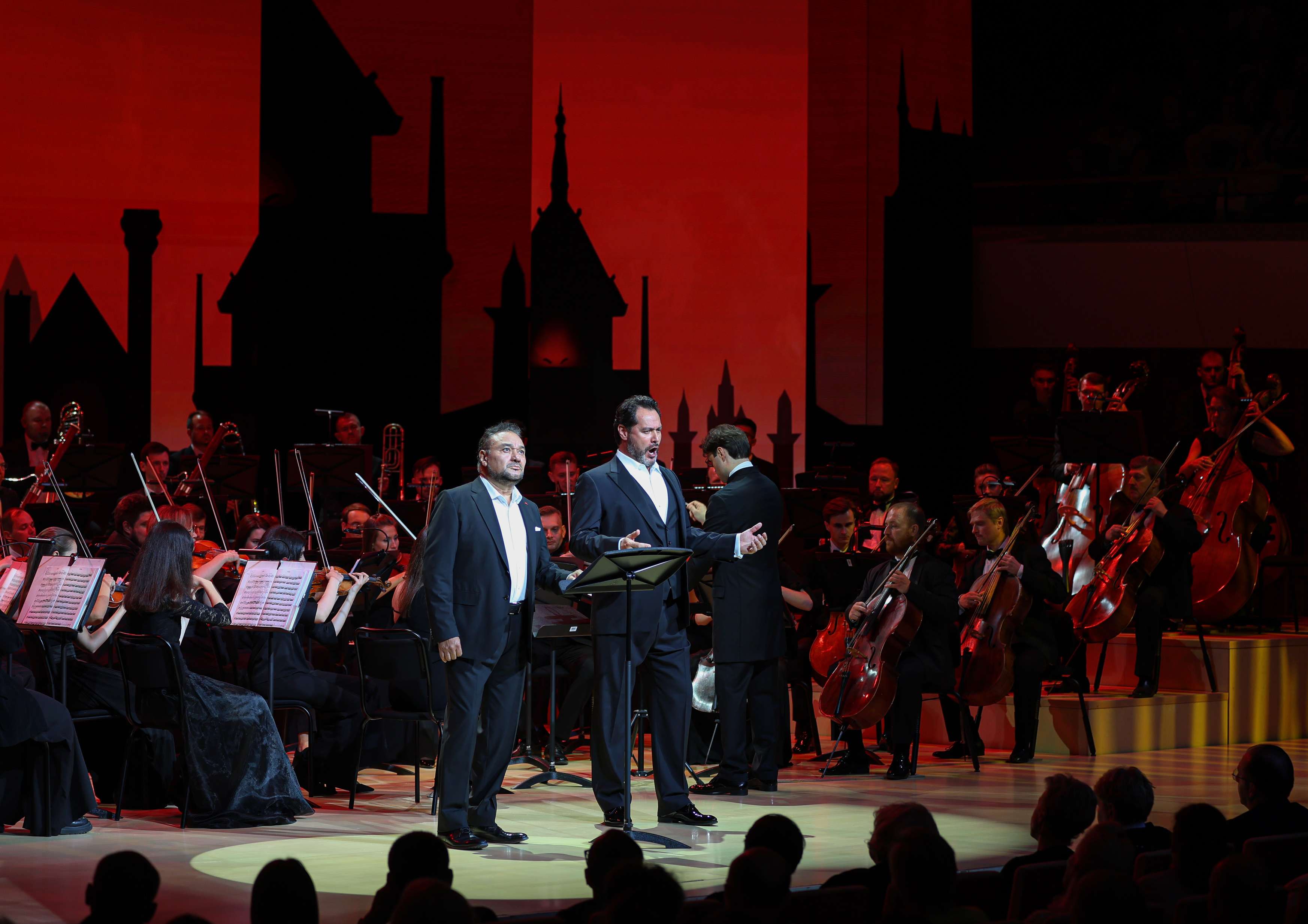 За исключением этой вещи и россиниевской Funiculi (оба номера – на бис) вся остальная программа концерта была сугубо оперной и в основном популярной. Прозвучали фрагменты из опер «Фауст», «Вертер», «Сельская честь». «Луиза Миллер», «Дон Карлос», «Кармен», «Севильский цирюльник», «Дон Жуан», «Любовный напиток», «Тоска». «Искатели жемчуга», «Евгений Онегин». Относительным раритетом можно назвать лишь одну оркестровую пьесу – Венгерский марш из «Осуждения Фауста» Берлиоза, исполненный оркестром задорно, но небезупречно.