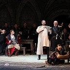 Музыкально спектакль был почти безупречным: сильный состав солистов, великолепный хор Нины Ломанович, радовавший чистотой и монолитностью звучания, оркестр, играющий стройно и без помарок; предложенный Артемом Макаровым темповый план оказался по-настоящему классическим, что придало исполнению черты эталонности. Среди солистов лидировали низкие голоса – роскошной Любашей с то щемяще-сердечными, то неистово страстными интонациями предстала звездная меццо Оксана Волкова; Грязной вышел колоритным буяном у баритона Станислава Трифонова, чей богатый голос особенно хорош на середине диапазона; фундаментальный бас Андрея Валентия обстоятельно озвучил степенного Собакина. Кстати, эти три вокалиста уже показывали именно эти работы в России: Волкова и Валентий – в Большом театре, Трифонов – на Шаляпинском фестивале в Казани. Понравилась и сопрано Татьяна Гаврилова в партии Марфы: пусть и не все ее верхние ноты были одинаково ровны и академичны, но в целом она сумела наделить звук кристальной чистотой, что ценно для ее героини. Слабее выступил тенор Александр Гелах в партии Лыкова – пел прямолинейно и напористо, не изящно, особенно агрессивными получались верха. Из исполнителей второстепенных партий запомнился Андрей Селютин – Малюта: его мягкому и не очень низкому басу партия не слишком подходит, но сам голос отличается завидной красотой. Сопрано Мария Галкина в партии Сабуровой порадовала ярким, сильным звуком, выразительным пением в знаменитом монологе третьего акта, однако ансамблевое пение – явно несильная ее сторона. Надо отметить также, что у всех солистов была в памятный вечер какая-от совершенно невероятная четкость дикции, что не так часто можно встретить в опере.
