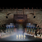 По мнению подавляющего большинства критиков, недостатком старейшей веронской постановки является статика персонажей, якобы никак не вписывающаяся в современные представления об оперном искусстве. У меня такого ощущения не возникло: все-таки моментов полностью застывшего кадра нет, в ансамблях певцы взаимодействуют друг с другом, в массовых сценах у хора и миманса тоже есть определенный рисунок роли. Не говоря уже о яркой хореографии танцевальных номеров (хореограф Сузанна Эгри). А отсутствие излишней суеты и попыток заполнить огромное пространство фигурантами и мимансом позволяет сосредоточиться на действии и на музыке.
