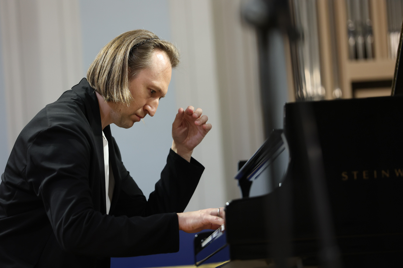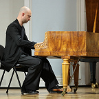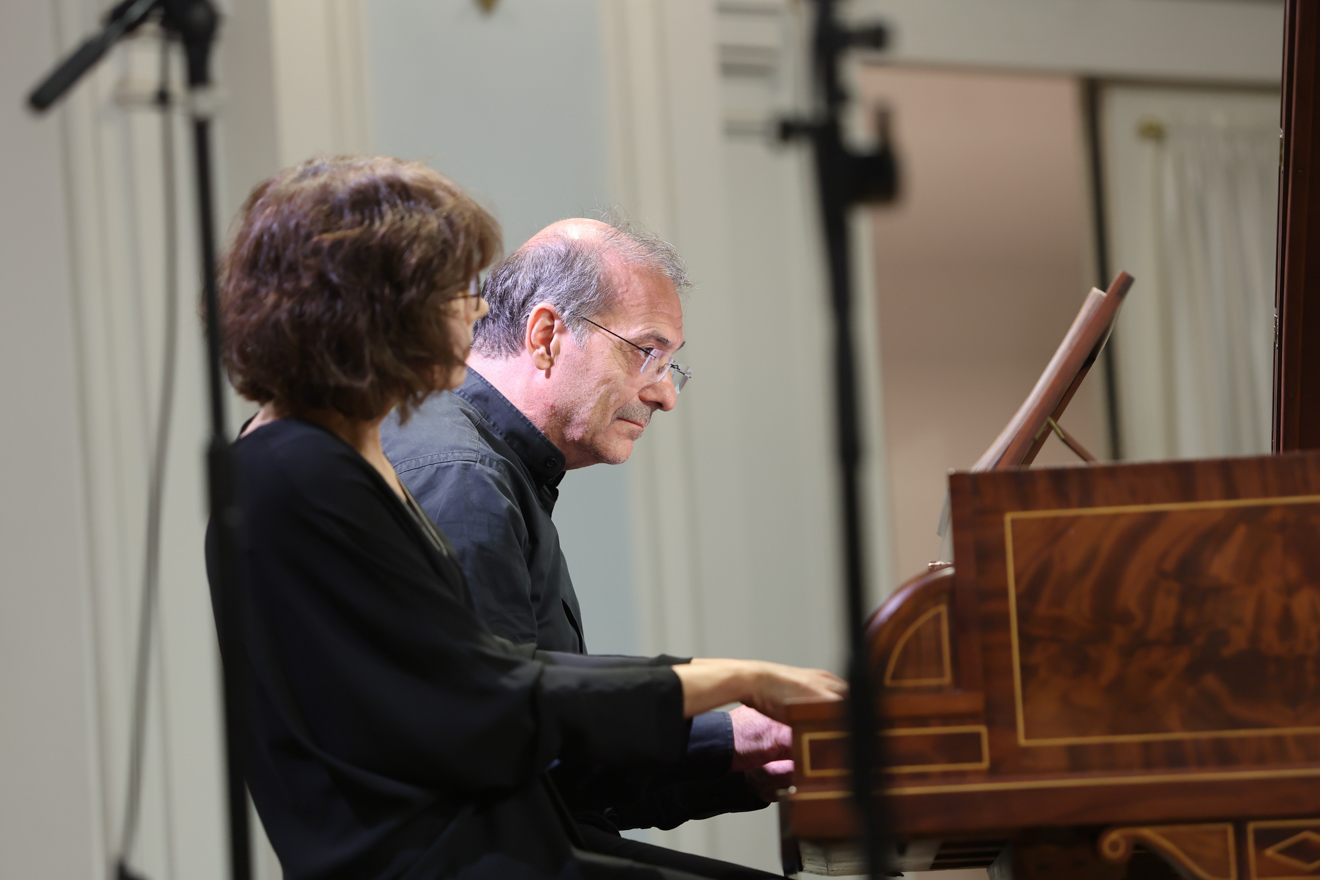 Программа второго отделения концентрировалась уже вокруг основной специальности юбиляра. Были задействованы два рояля из коллекции Алексея Ставицкого – «Эрар» (1837) и «Вирт» (1843), хотя не обошлось и без привычного «Стейнвея». Тон задал Юрий Мартынов, открывший отделение Сонатой № 5 ми минор Шуберта. Месяцем раньше я слышал у него эту же сонату на фестивале «Gnessin Air на Знаменке», только там он играл на «Стейнвее», а здесь – на «Вирте». Оба варианта были в равной степени хороши, но на «Вирте», ясное дело, многое прозвучало иначе, появились новые оттенки. А парад пианистов продолжили сольные выступления Петра Айду (не слишком часто выступающего в этой ипостаси), Сергея Каспрова, Владимира Иванова-Ракиевского. Наиболее яркое впечатление оставил все же Каспров, построивший свою программу на контрасте двух стихий («Отражения в воде» Дебюсси и «Заклинание огня» Вагнера – Брассена). Екатерина Державина, до обидного редко в последнее время выступающая сольно, предстала в ансамбле поочередно с тремя музыкантами – Ивановым-Ракиевским («Три пьесы в 3 руки» Стравинского), Александром Рудиным, игравшим на сей раз не на виолончели, а вовсе даже на «Эраре» (Рондо для фортепиано в четыре руки D 608 Шуберта), и Яной Иваниловой, прекрасно спевшей две песни из цикла «Ступени» Сильвестрова. Елизавета Блохина и Вера Нижарадзе исполнили несколько пьес К.М. фон Вебера из цикла «Восемь пьес для фортепиано в четыре руки», op. 60. А завершил вечер еще один прекрасный ансамбль Musica Tempora, в составе которого, наряду с его основательницей, клавесинисткой Дарьей Борковской, мы вновь увидели уникальную теорбистку Асю Гречищеву (игравшую в этот вечер также и с двумя другими ансамблями). Но все же главными действующими лицами были здесь Руст Позюмский (виола да гамба) и Алиса Тен. Эта удивительная и универсальная певица исполнила две песни Жан-Батиста Друара де Буассе, а также юмористический опус Позюмского «Конь унес любимого».