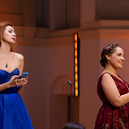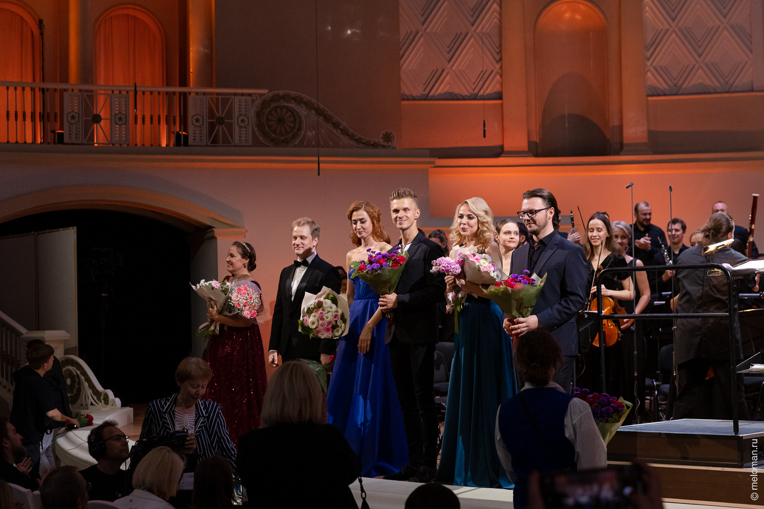 Возможно, не стоило бы столько времени уделять постановке, которую не привезли в Москву, однако к этим рассуждениям подвигли сами нижегородцы — не только пространным буклетом, но и концертом. В нем были явственны следы спектакля: все исполнялось наизусть, между артистами постоянно пробегала искра настоящего театрального взаимодействия, на выстроенном в центральной части сцены подиуме они оперировали в рамках хорошо проработанных мизансцен, что, безусловно, придавало живости исполнению. Кроме того, свой первый выход к публике кокетливые Фира-Фьордилиджи и Даша-Дорабелла проводили с гаджетами в руках, в которые они постоянно смотрели, делали селфи и явно были погружены в виртуальную реальность гораздо больше, чем в настоящую. Правда, выдержать эту линию в течение всей оперы не удалось — артисты довольно скоро забыли про свои гаджеты и резвились в рамках вполне традиционной оперы-буффа.