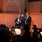 Предъявленная же во всей красе музыкальная часть оставила самые позитивные впечатления. Претендующий на аутентизм оркестр La Voce Strumentale под управлением Дмитрия Синьковского, частично укомплектованный старинными инструментами, играл стройно и энергично, радуя хорошим балансом и между группами инструментов, и с певцами на подиуме. Дирижеру удалось сохранить на протяжении всей длинной оперы ощущение легкости и грациозности музицирования, а почти постоянное резкое акцентирование сильных долей, явно отсылающее к барочной традиции, добавляло интерпретации витальности и искристости. Помарки меди не воспринимались как что-то чрезвычайное — скорее, как напоминание о том, что старинные инструменты далеки от совершенства и играть на них — сущее наказание. Камерный по составу хор (хормейстер Арина Мирсаетова) пел немногочисленные в этой опере фрагменты красивым звуком и с интонационной и ритмической точностью.