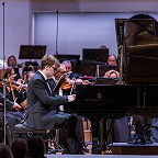 Петр Акулов, игравший Третий концерт Прокофьева, в целом достойно справился с технически заковыристым сочинением, но все же складывалось ощущение, что талантливый пианист здесь – не совсем в своей стихии. Не хватало настоящего драйва и, напротив, многовато было «умеренности и аккуратности». Индивидуальность пианиста куда как лучше проявилась в сыгранном на бис фрагменте из балета «Ромео и Джульетта» – по совпадению, звучавшем уже в начале вечера в исполнении оркестра. Переложение, судя по всему, принадлежало самому Акулову, и здесь он в полной мере раскрылся как лирик по преимуществу.
