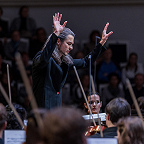 Спустя несколько дней в Москве вновь появился Курентзис с еще одной Пятой симфонией, только уже – Шостаковича. Теперь они с MusicAeterna выступали в «Зарядье». В первом отделении прозвучал Концерт для скрипки с оркестром Брамса, в котором солировала Ольга Волкова. Казалось бы, Брамс не принадлежит к кругу композиторов, особенно близких Курентзису, который вообще жалует романтизм почти исключительно вагнеровско-брукнеровско-малеровского типа. Тем не менее исполнение оказалось весьма впечатляющим. Дирижер бережно вел солистку, не жертвуя при этом и выразительностью оркестра. Волкова играла строго, без романтических перехлестов, но вместе с тем достаточно эмоционально, красивым, насыщенным звуком, не говоря уже об отличной технике. А на бис великолепно исполнила Сонату №3 и финал Сонаты №2 Изаи.
