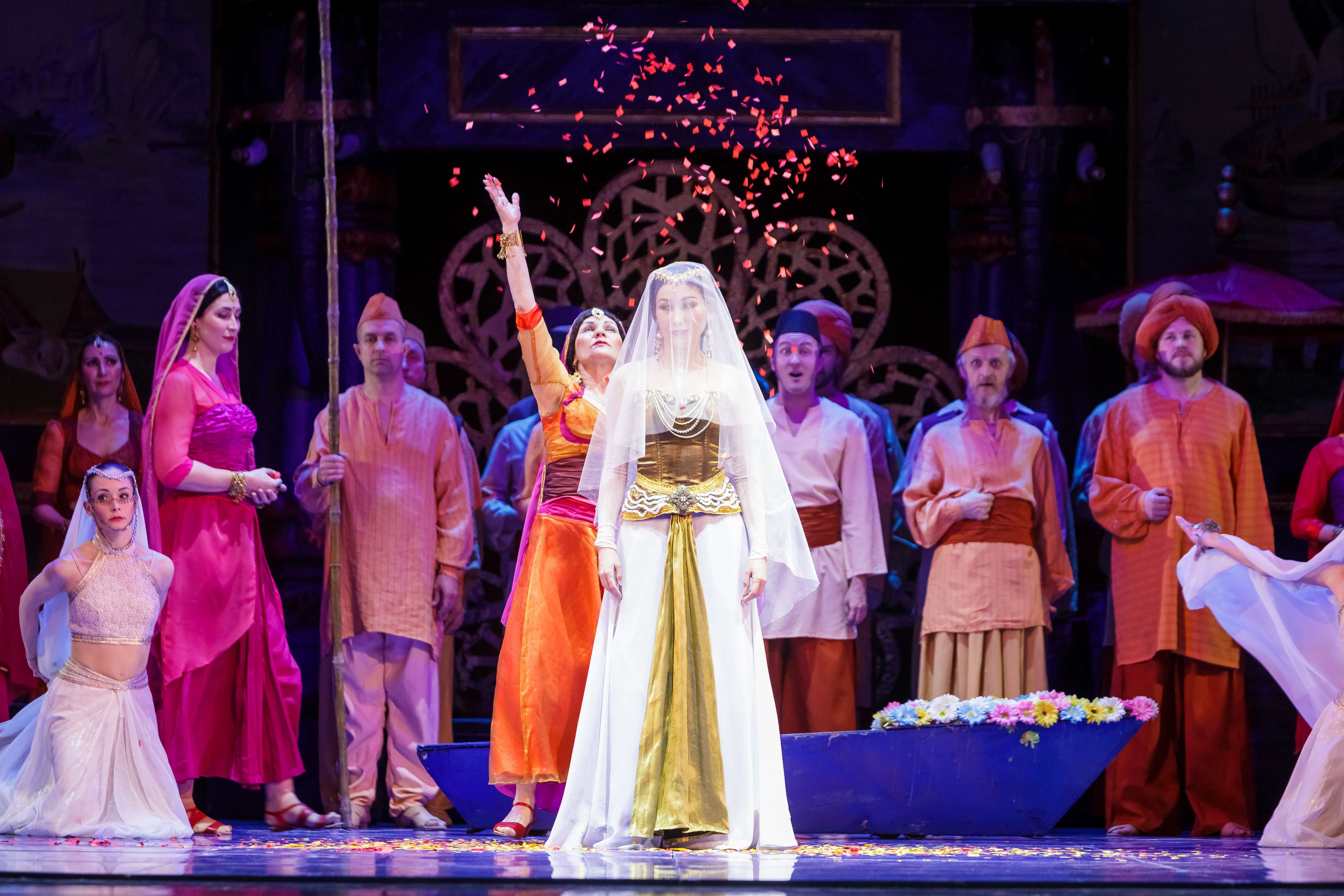 Визуально спектакль очень хорош: богат на разнообразие красок, при этом его художник обладает вкусом и пониманием гармонии. Костюмы отсылают к исторической Индии (хотя, строго говоря, по либретто М. Карре и Э. Кормона действие происходит на Цейлоне). Красные, оранжевые, бордовые, фиолетовые сари и чалмы, золотой костюм на жреце Нурабаде — персонажи в них напоминают экзотические цветы и даже порхающих тропических бабочек, поскольку спектакль насыщен пластикой. Миманс и хор воспроизводят движения в стиле хинду, а в танцах кордебалета соединился классический европейский балет и старейшая индийская классика – танцевальная традиция бхаратанатьям.