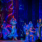 Мостик из сказочной «седой старины» в близкие к нам времена протягивает не только кинохроника: огненно-красный Петушок переливается голографическим сиянием, он — диковинный робот, коим искушает глупого Додона «мировая закулиса» западного происхождения. Астральные символы, обильно украшающие зрительный зал по мановению Звездочета (их с помощью видео-мэппинга проецируют на барочную лепнину), говорят одновременно и о мистике, эзотерике, колдовских чарах, и о чарах технологических, в которые стремительно погружается человечество сегодня, не вполне осознавая ожидающие его последствия.