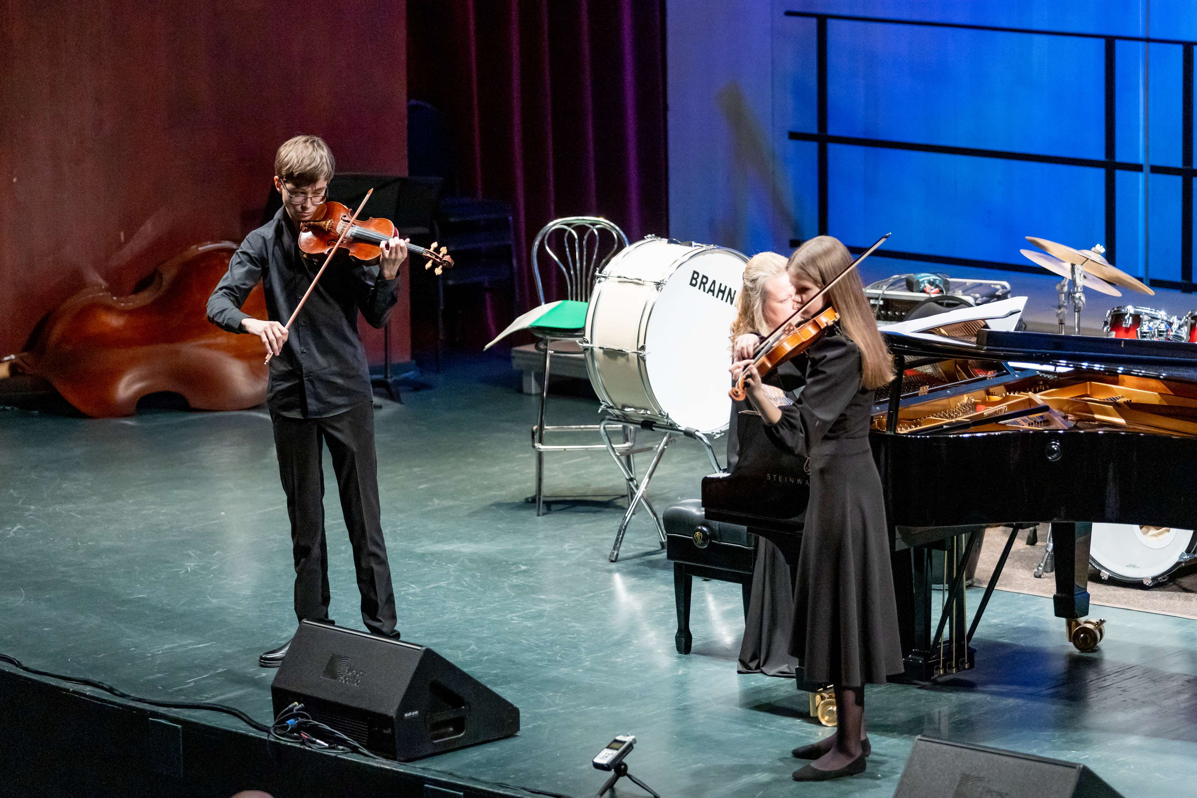 Публика тепло встретила дуэты МГДМШ им. И.О. Дунаевского Елизаветы Горшениной - Ивана Бушуйкина (пр. Пугач О.О. и Текучёв А.И.) и Павла Розенфельда - Регины Гороховой (пр. Мартынова Т.И.).