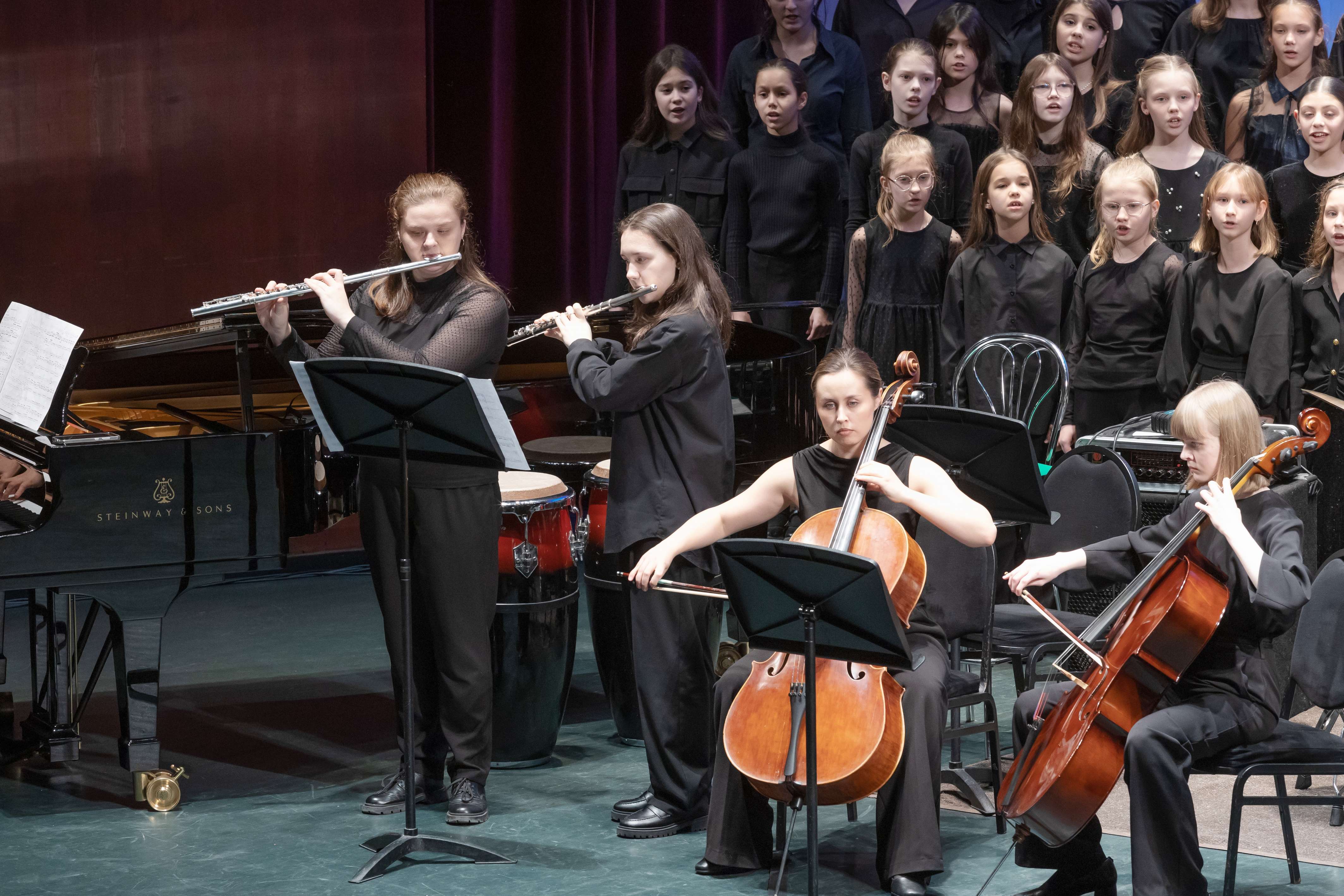 Среди ярких номеров концерта – монолог «Ведите меня завязанными глазами..» Д. Хармса в исполнении Амины Смирновой (пр. Проскура А.А) из ДШИ им. Е.Ф. Светланова и пьеса Э. Гарнера «Туманно» в версии Григория Жижилкина (класс заслуженного работника культуры РФ Гречищева Е.С.) МГДМШ им. И.О. Дунаевского – победителей фестиваля «Рождественские звёзды».