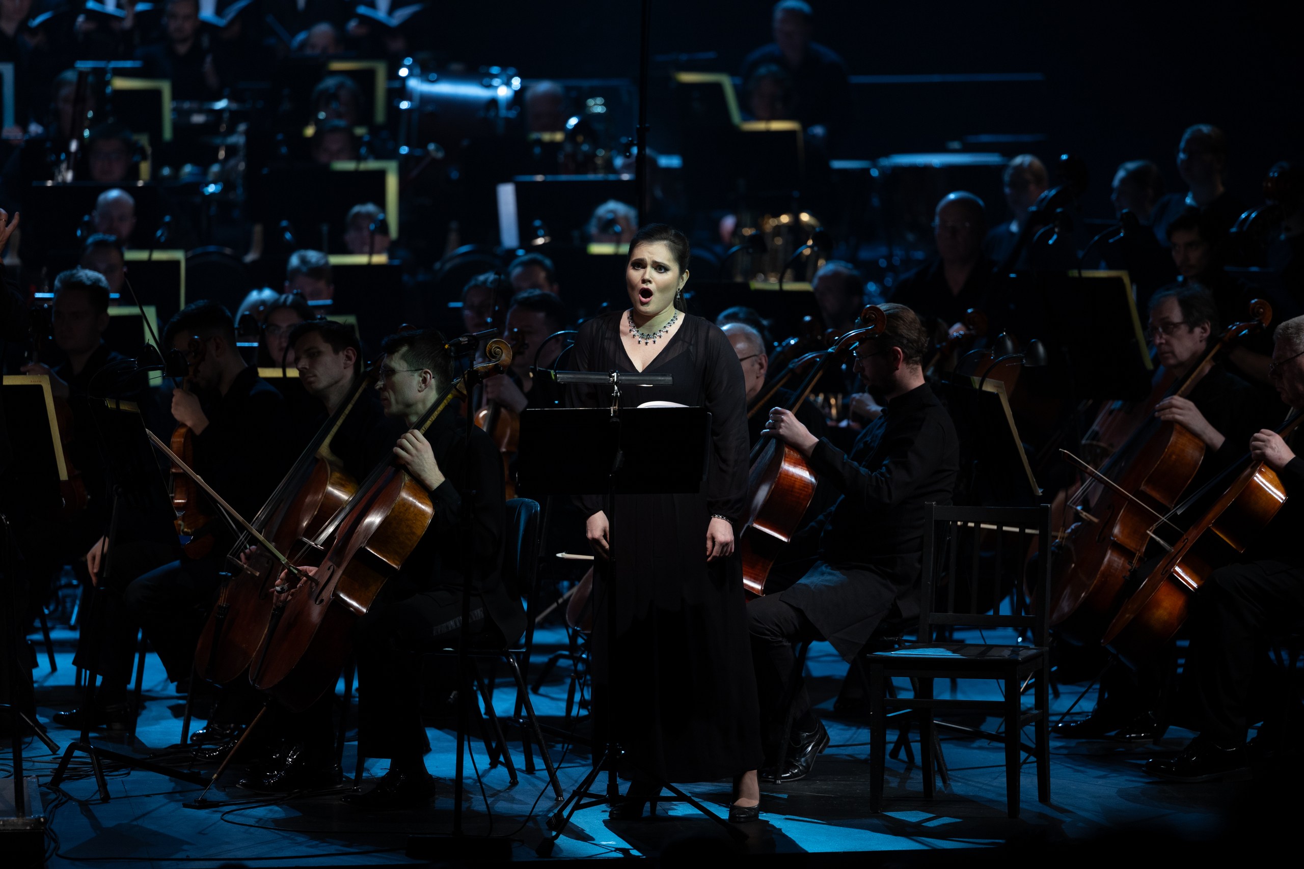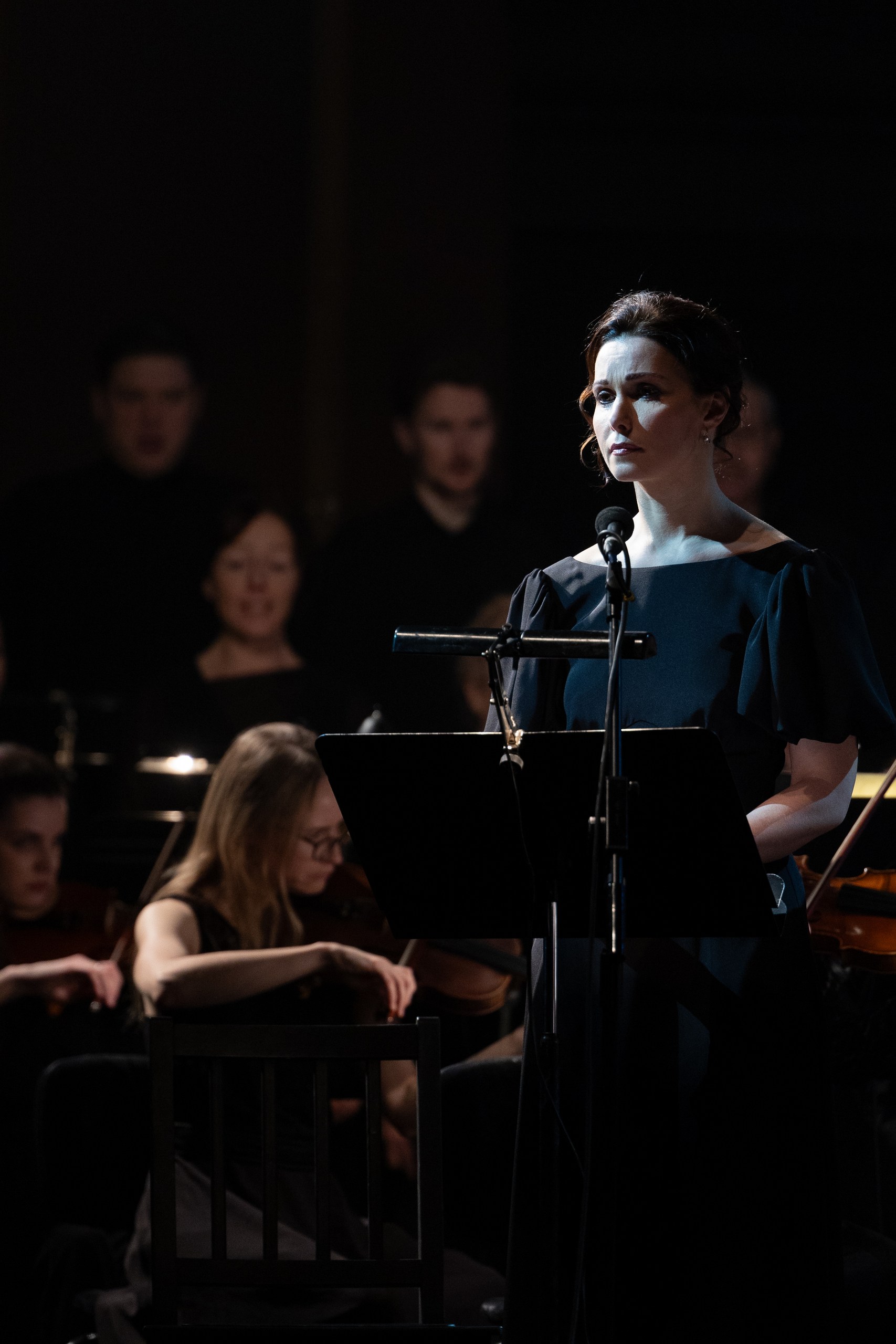 Симфонией с участием солистов и хора давно уже никого не удивишь, но вот включение в нее еще и голоса чтеца (причем на протяжении всего произведения), оказывающегося более значимым, нежели сольная партия, – такое для нас в новинку. Маэстро Федор Леднёв даже назвал его в интервью «концертом для чтеца с оркестром». Театр не пошел по «аутентичному» пути, когда разговорный текст произносится строго на том языке, на каком написан, и поступил абсолютно правильно. Текст здесь слишком важен, и никакие титры живого слова не заменят. Перед нами не что иное, как монологи узника Освенцима, в ожидании смерти общающегося с Богом, одновременно делясь сокровенным и упрекая Его в том, что все это допустил. В роли Чтеца выступила уникально одаренная Александра Урсуляк. Она была, как всегда, артистична и выразительна, а ее голос очень органично вписался в музыкальную ткань. Хороши были также солистка Валерия Бушуева, оркестр и хор «Новой оперы», к которому присоединился и Хор мальчиков Хорового училища им. Свешникова (худрук и хормейстер Алексадр Цимбалов). Благодаря усилиям Федора Леднёва все они составили единое целое, и исполнение симфонии Бернстайна оставило на редкость сильное впечатление.