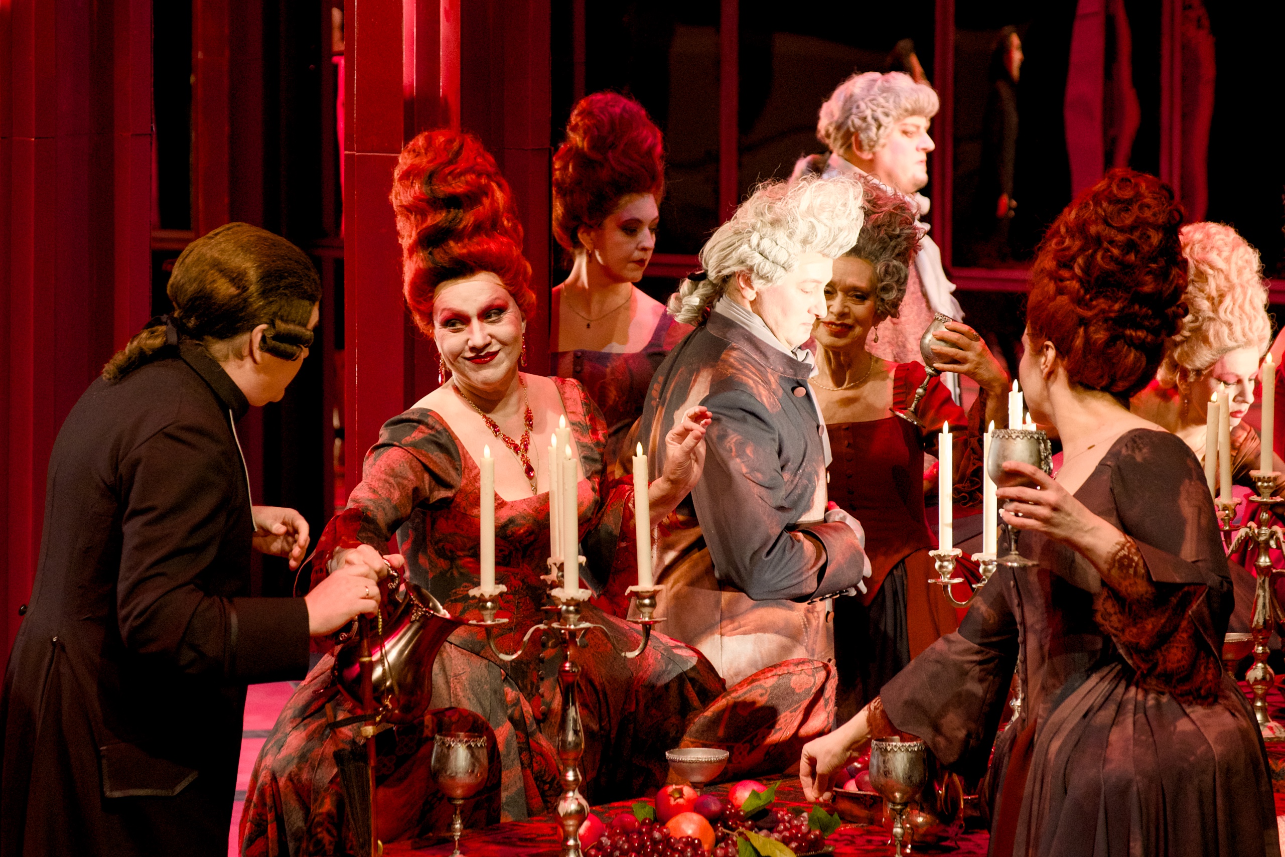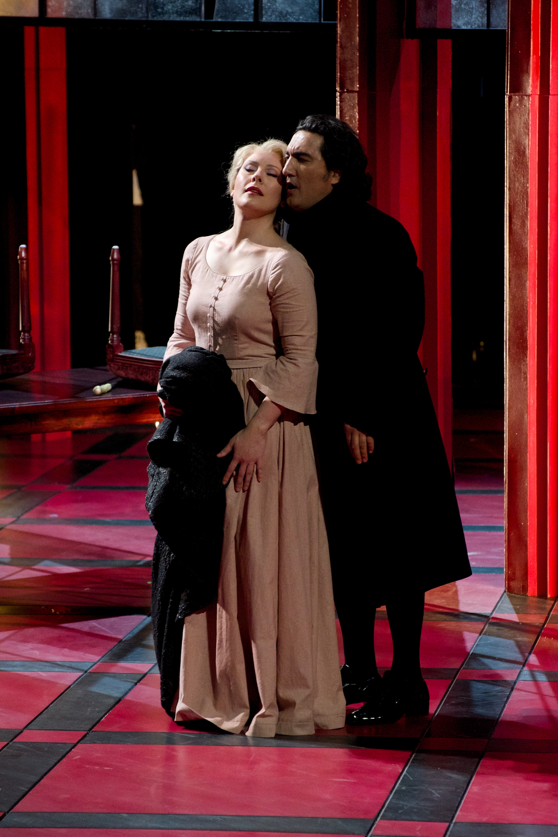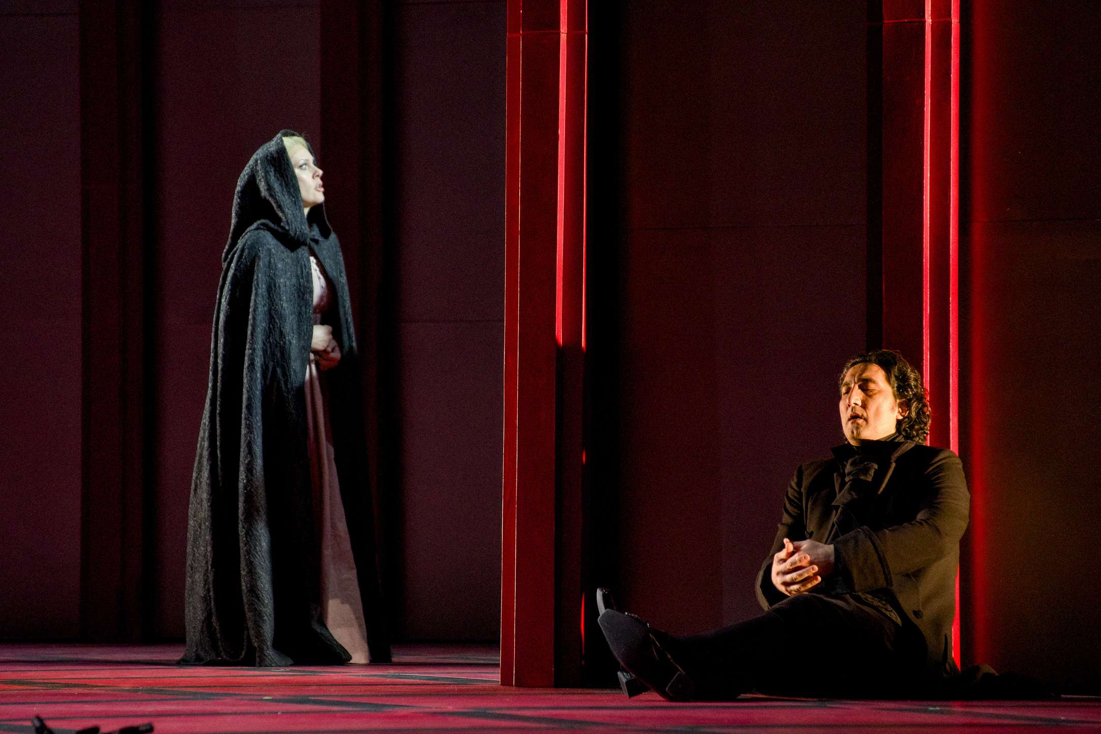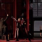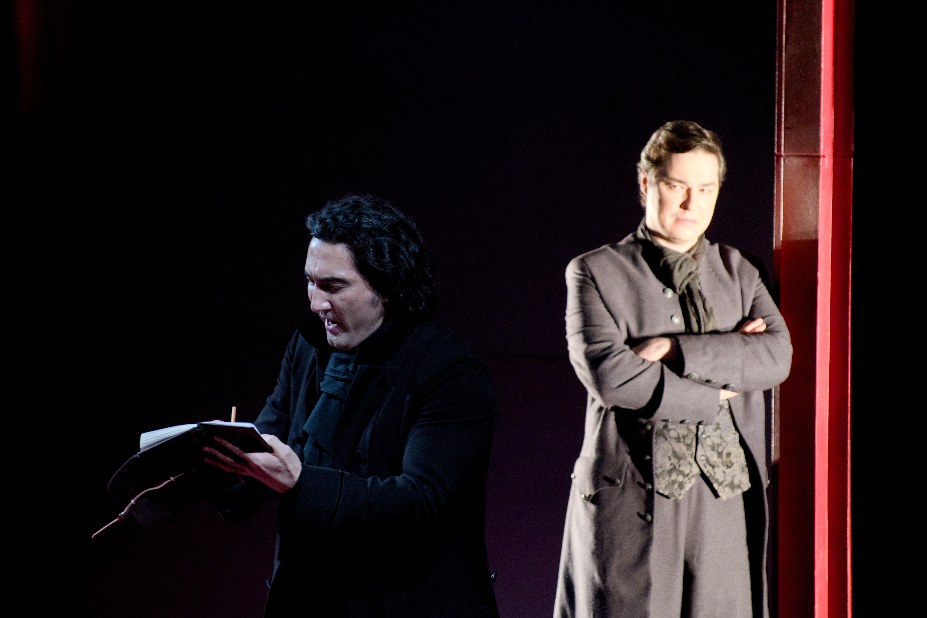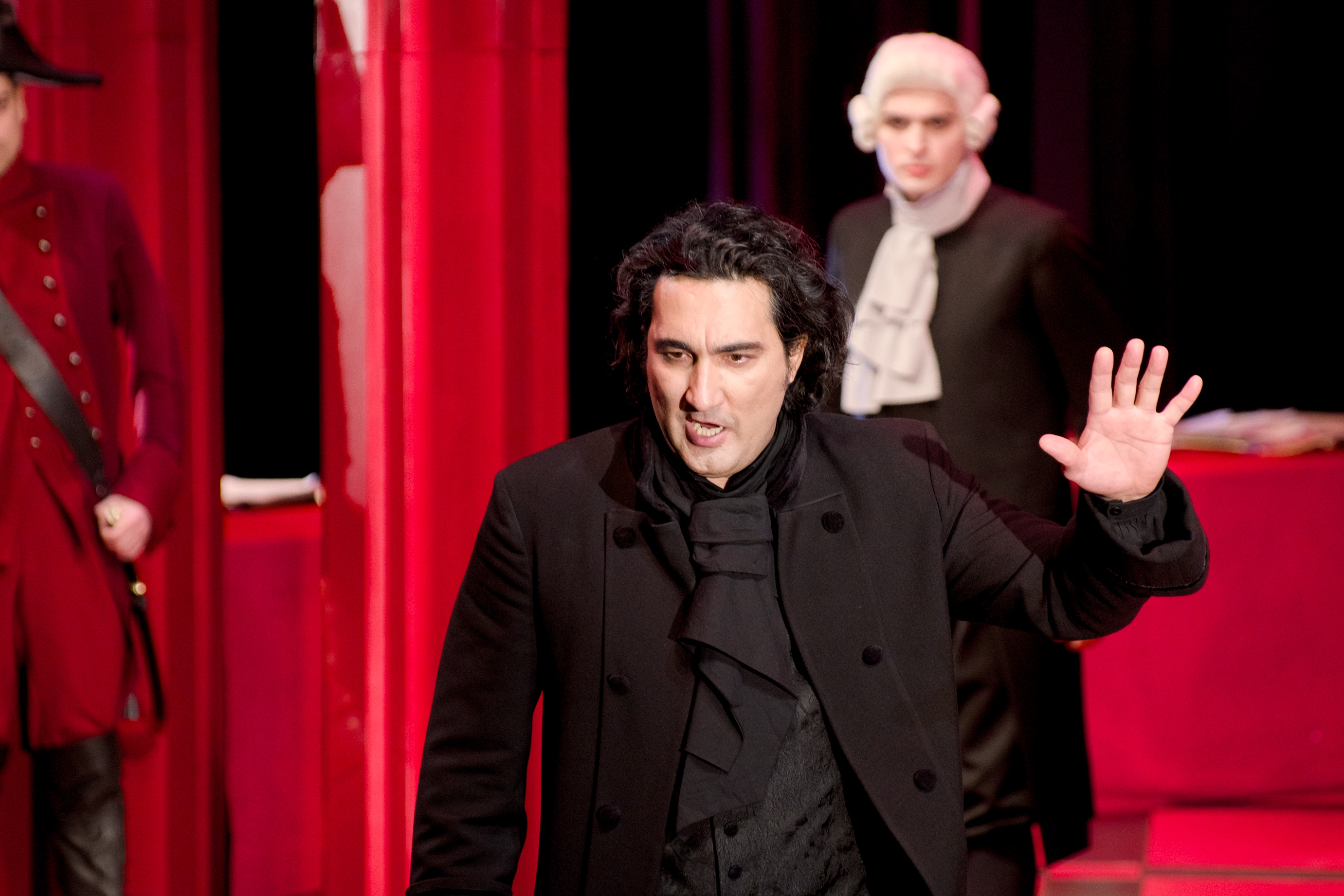 Открывать богатства джордановского опуса пригласили молодого дирижера Пьетро Маццетти, только начинающего международную карьеру. Умел, энтузиазма вдостать, но целое пока не объял: местами баланс между сценой и ямой провисал, и певцы будто не совсем были ему податливы. По крайней мере, оркестр в руках Мацетти по части красочности оказался интереснее вокальной команды, пропевшей почти весь спектакль в скудном диапазоне от меццо-форте до фортиссимо. Особой приверженностью последнему динамическому оттенку отличился Антон Зараев – Жерар, который зачем-то надел (фигурально говоря) маску злодея и крайне нерачительно распорядился своим большим и красивым голосом, практически прокричав всю партию. А свет очей его Маддалена, точнее, сопрано Елена Гусева, так бы и осталась в памяти особой с по-пионерски звонким голосом и таким же прямолинейным прочтением партии, если бы не исповедальная ария «La mamma morta», где героиня оплакивает убитую мать, а с нею свое прошлое. Только тут певица и открыла: тонкостями фразировки владею, оттенков — сколько пожелаете. Но смириться с тем, что кто-то в спектакле неидеален, можно, если только это не атлант, на плечах которого держится вся опера. У мамтовского премьера и желанного гостя прочих сцен Нажмиддина Мавлянова все есть для партии Шенье: красота и блеск тембра, ровность звуковедения, полетность, сила, выносливость, школа … — но во всем какой-нибудь капли да не доставало. Главное же, чего певцу не хватило, чтобы стать по-настоящему магнетическим центром оперы, так это проработки образа. Внутренней, личной. И внешней. Мало одеть протагониста с головы до ног в черное. Дайте ему средства нарисовать яркий персонаж. Но это — уже к Александру Тителю.