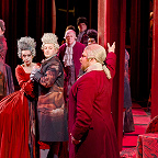 Его в постановке было не узнать. Берясь за работу, режиссер будто сказал себе: все, никаких экспериментов с формой и содержанием! Написано «конец XVIII века» — будут вам камзолы и фижмы; что рассказано в либретто, то в точности и передам. Учитывая, что событийный ряд в «Шенье» не самый оригинальный и захватывающий, решение как будто не из лучших. Спасением тут могут быть проявленные подтексты, вкусные подробности, интересно прописанные взаимоотношения. Но ни того, ни другого, ни третьего в спектакле не обнаружилось, хотя ставил его мастер, как раз в этом преуспевавший всю свою жизнь. Такому сюрпризу приходит только одно объяснение: Титель выдвигал манифест (который по определению прямолинеен) с собственными соображениями по поводу текущего момента, в котором что-то грохочет, ломается, перекраивается — как в самых радикальных революциях. Тогда и ответ на вопрос, почему именно сейчас выбран именно этот материал, просматривается, А с ним и концепция, которая — в сделанном выборе да, может быть, еще в той эмоции, которую родит (в каждом, не исключено, свою) глухая стальная стена, вдруг образовавшаяся перед зрителем на финальных аккордах.