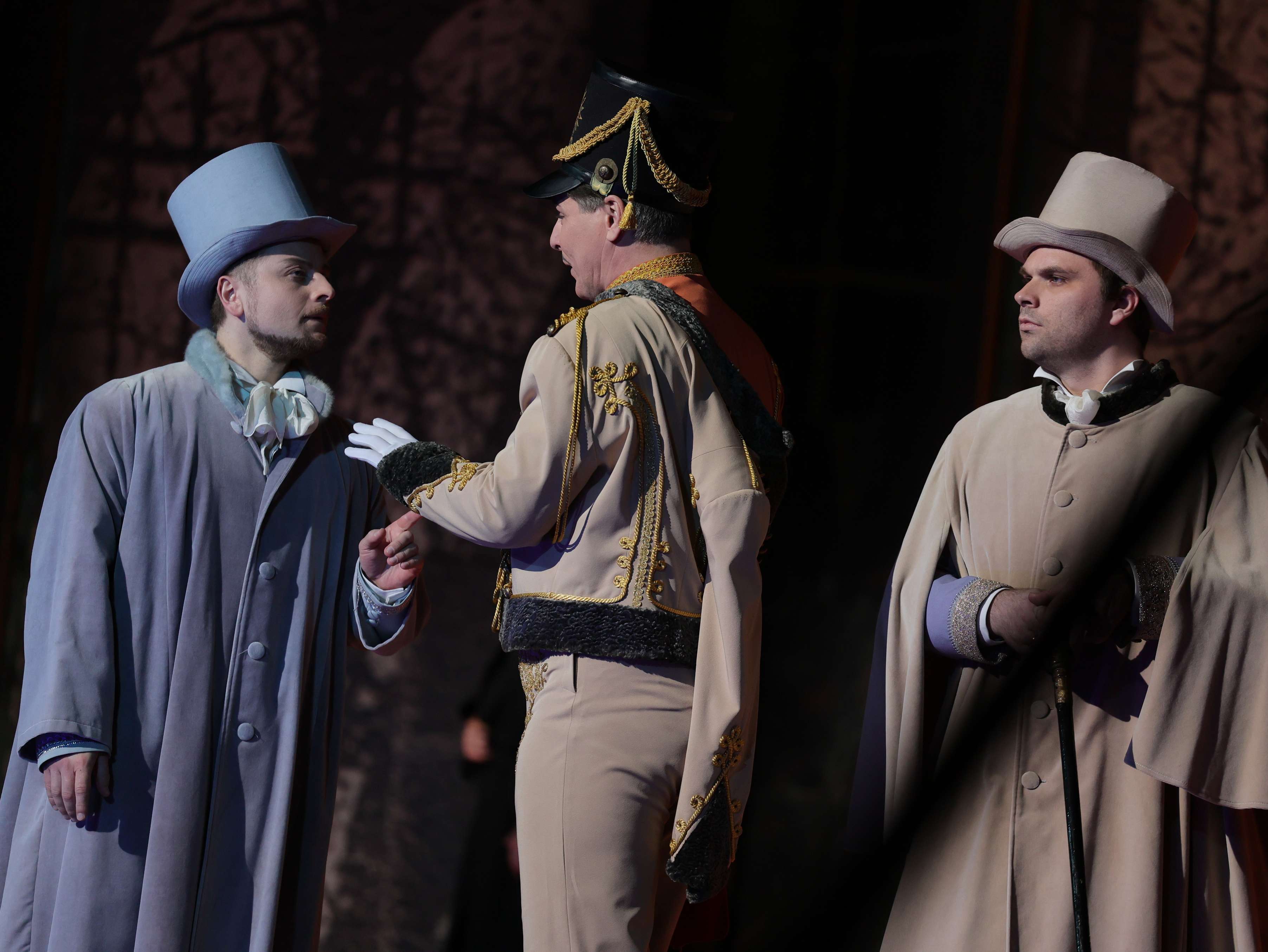 Именитому гастролеру театр подобрал в целом сильный состав. Графиню спела Оксана Якушевич: не слишком выровненный голос солистки с проблемной серединой для более вокально затратных партий был бы, наверное, не к месту, но для отжившей свое метрессы – в самый раз, тем более что пение отличала тонкая нюансировка и чуткая эмоциональность, а актерски Якушевич сделала свою Графиню властной, высокомерной, резкой, несгибаемой, словом, интересной.
