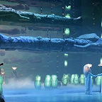 «Переезжая» из оперы в оперу, они меняли позы и облики. Тут просто стояли, сидели или лежали, там полусогбенно спинами поддерживали огромный камень, здесь зависали в падении. На плечах у них - либо вовсе ничего, либо черепа каких-то доисторических животных, а то - круглые головы с лицами, будто нарисованными пещерным человеком, едва научившимся выводить черточки. Временами в гигантах что-то загоралось — там, где сердце, и там, где проходят мыслительные процессы. Ау, это не просто наблюдатели, определенно давали нам понять. Но считывать невербальные посылы древних, как сама Земля, комментаторов и прорицателей в новом, богато-пребогато разукрашенном пространстве стало делом почти невозможным... А может, уже и не нужным.