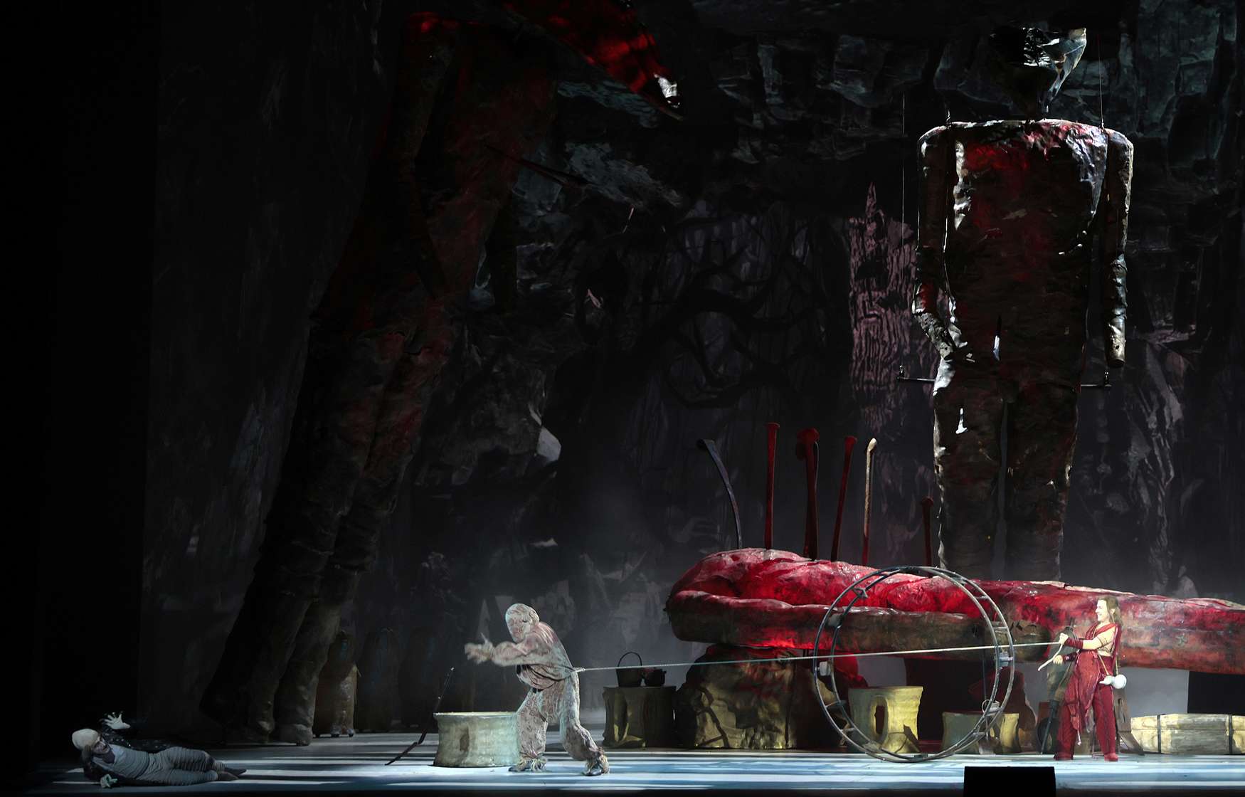С энтузиазмом взявшись за обновление того, что составляло безусловную ценность постановки, столь же горячего интереса к модернизации наиболее уязвимого в ней мариинцы не проявили. Речь о режиссерских решениях, рождавшихся в весьма нетривиальных обстоятельствах. Изначально звали постановщика из дальних стран - не подошел. Привлекли оттуда же другого — и он не вписался в то, что виделось Гергиеву и его единомышленникам-художникам Георгию Цыпину и Глебу Фильштинскому. Дело кончилось приглашением своих режиссеров, одному из которых отдали в работу две первые части тетралогии, другому - две последние. И хотя время не могло не поистереть придуманное ими, разница в почерке читается и сегодня. Юлия Певзнер создала бесцветные беспомощные иллюстрации, Владимир Мирзоев попытался говорить образно. И главным его метафорическим изобретением стало колесо, в перекличку с названием тетралогии безусловно вступающее, но отношения к откровениям, которые мир денно и нощно ищет в творениях байрейтского гения, не имеющее. С колесом, совершенно цирковым по виду, Зигфрид выбегает на первое знакомство с публикой, катя в нем кого-то, ряженного медведем. В старой версии постановки мертвое тело героя еще и заталкивали вместо мишки в эту конструкцию, а затем отправляли в последний путь под звуки «Траурного марша». В нынешней этот чересчур оригинальный контрапункт к одному из величайших трагедийных высказываний в музыке, исчез. Но сказать, что в тот же сцена миг преобразилась — сильно поспешить.