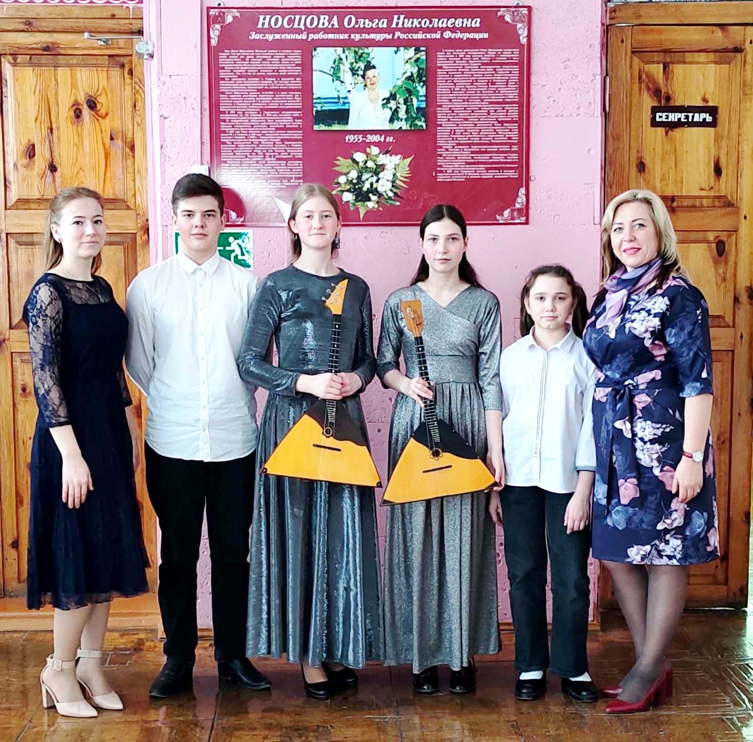На отделении народных инструментов успешно развиваются различные формы коллективного музицирования: оркестр народных инструментов, ансамбли, среди которых выделяется Образцовый художественный фольклорный ансамбль «Журавушки» (рук. Зубова И.С., конц. Рычков А.В.). Ансамбль активно работает в фольклорно-сценическом направлении. В репертуаре ансамбля песни разных жанров: календарные, обрядовые, игровые, плясовые, хороводные, протяжные, лирические, исторические, духовные стихи различных областей России. Обыгрываются традиционные обряды, праздники, обыгрываются музыкально-фольклорные композиции на основе русских народных сказок. Учащиеся воспитываются на материале подлинного народного песенного искусства, познают богатство национальных культур, красоту родного языка, своеобразия и закономерности строения национальной мелодики.