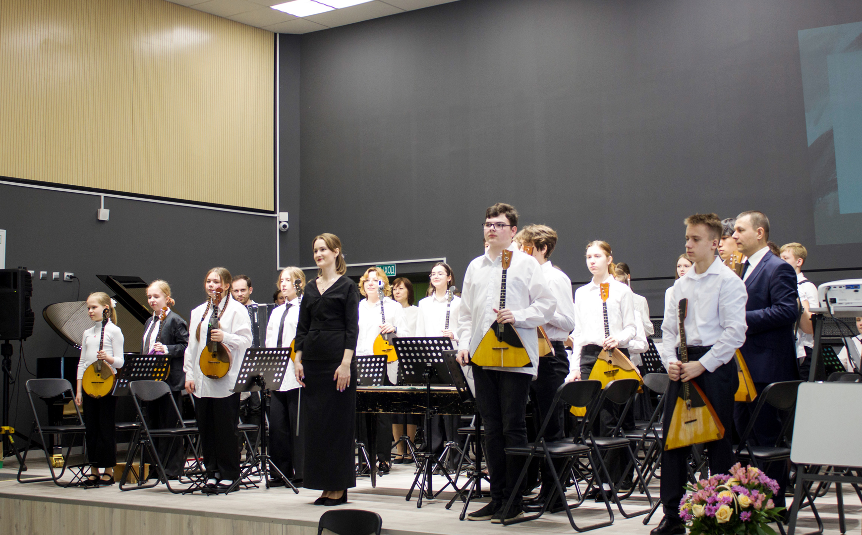 Кульминацией праздничных мероприятий стал юбилейный концерт. Он прошел 12 апреля в нашем зале вместимостью 300 мест, который гостеприимно распахнул свои двери всем желающим. Их было такое количество, что многим пришлось стоять на протяжении всего двухчасового мероприятия. На высоком уровне выступали солисты, ансамбли, коллективы, вышли на сцену и наши выпускники. Звучала классика, произведения современных композиторов, обработки народных песен в исполнении оркестра народных инструментов, ансамблей аккордеонистов, домристов. Оригинальная обработка народной песни прозвучала в исполнении хора «Созвучие» в сопровождении аккордеона (партию аккордеона исполнил наш выпускник Даниил Луговый, лауреат премии Гранта Москвы).