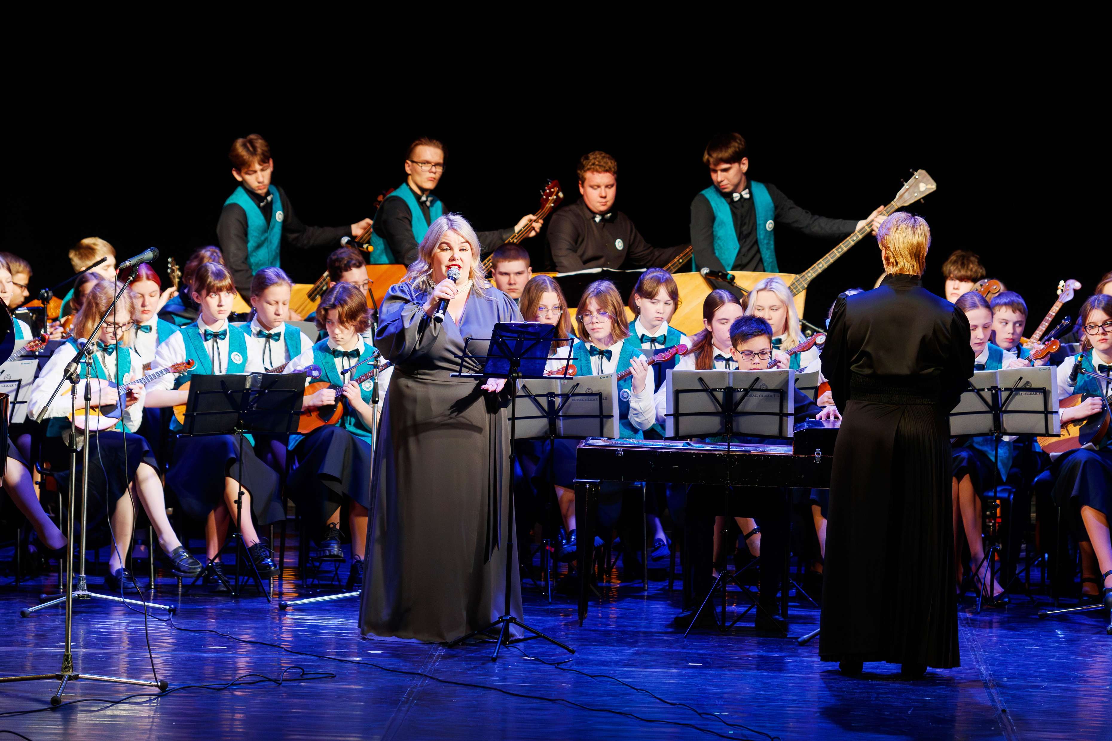 Концертный хор Гимназии «Cantabile» в составе детского сводного хора города Челябинска совместно с солистами Магнитогорской хоровой капеллы имени С.Г. Эйдинова и Государственного русского народного оркестра «Малахит» исполнил легендарную песню «День Победы» на сцене театра оперы и балета им. И.М. Глинки.
