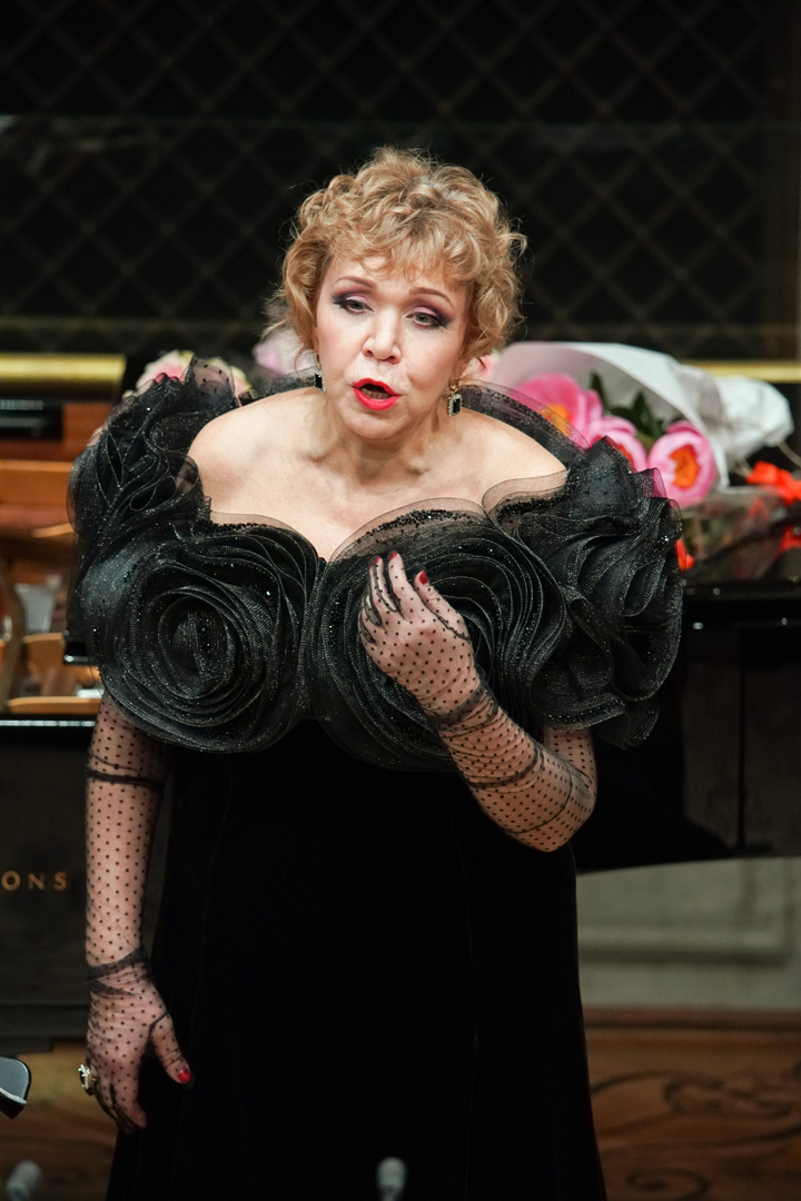 В прошлом году солистка Большого театра праздновала личный юбилей – внушительным сольником в этом же зале и полным шуток и поздравлений вечером в Зале имени Шнитке Дома музыки. Александра Леонидовна своих лет не скрываает, даты не драпирует: и 60-летие год назад, и творческое 30-летие в нынешнем году отмечает с размахом, смело и щедро предъявляя публике все, что накопила за творческую жизнь. А она была впечатляющей – ведущие и характерные партии-роли на родной сцене, громкие выступления на престижных мировых площадках, сотрудничество с самыми именитыми дирижерами, режиссерами, коллегами-вокалистами. Уникальный голос – масштабное, густое, темное контральто – и плюс, и минус в безусловно состоявшейся карьере Александры Дурсеневой. Она незаменима в партиях Вани, Ратмира, Басманова, Марфы, Амелфы, Бабы-турчанки, Ульрики – здесь без роскошного нижнего регистра никак не обойтись. Но эти же «стереотипы» мешали многим услышать в ней Амнерис или Любашу, и совершенно напрасно – техника и диапазон позволяли артистке быть состоятельной и в этих ролях, и она их пела, жаль, что не так много, как могла бы.