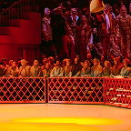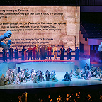 С этими титрами вообще был откровенный перебор. Огромное количество текста, поясняющего то хитросплетения политики Годунова, то внешнеполитический контекст его правления, то расстановку сил внутри Русского царства, постоянно «ползло» по заднику-экрану, здорово отвлекая от происходящего на сцене, рассеивая внимание публики, попросту мешая разворачивающейся драме, которая, хотя и повествует об исторических лицах, сама по себе очень условно исторична. Обилием явно излишней информации режиссер словно желал заполнить лакуны постановки, очевидные недоработки, недодуманность многих мизансцен и в целом театрального решения. Существенной работы с актерами увидеть не удалось. Все певцы, включая Ильдара Абдразакова, лицедействовали в силу своих способностей и наработанного опыта – у кого-то (маститых солистов Большого и Мариинки) роли давно и крепко сделаны, у кого-то (зеленой молодежи, только пробующей силы в великой опере) собственного решения нет, они в основном вокализируют на авансцене и ходульно жестикулируют, ибо режиссер не предложил им ничего увлекательного.