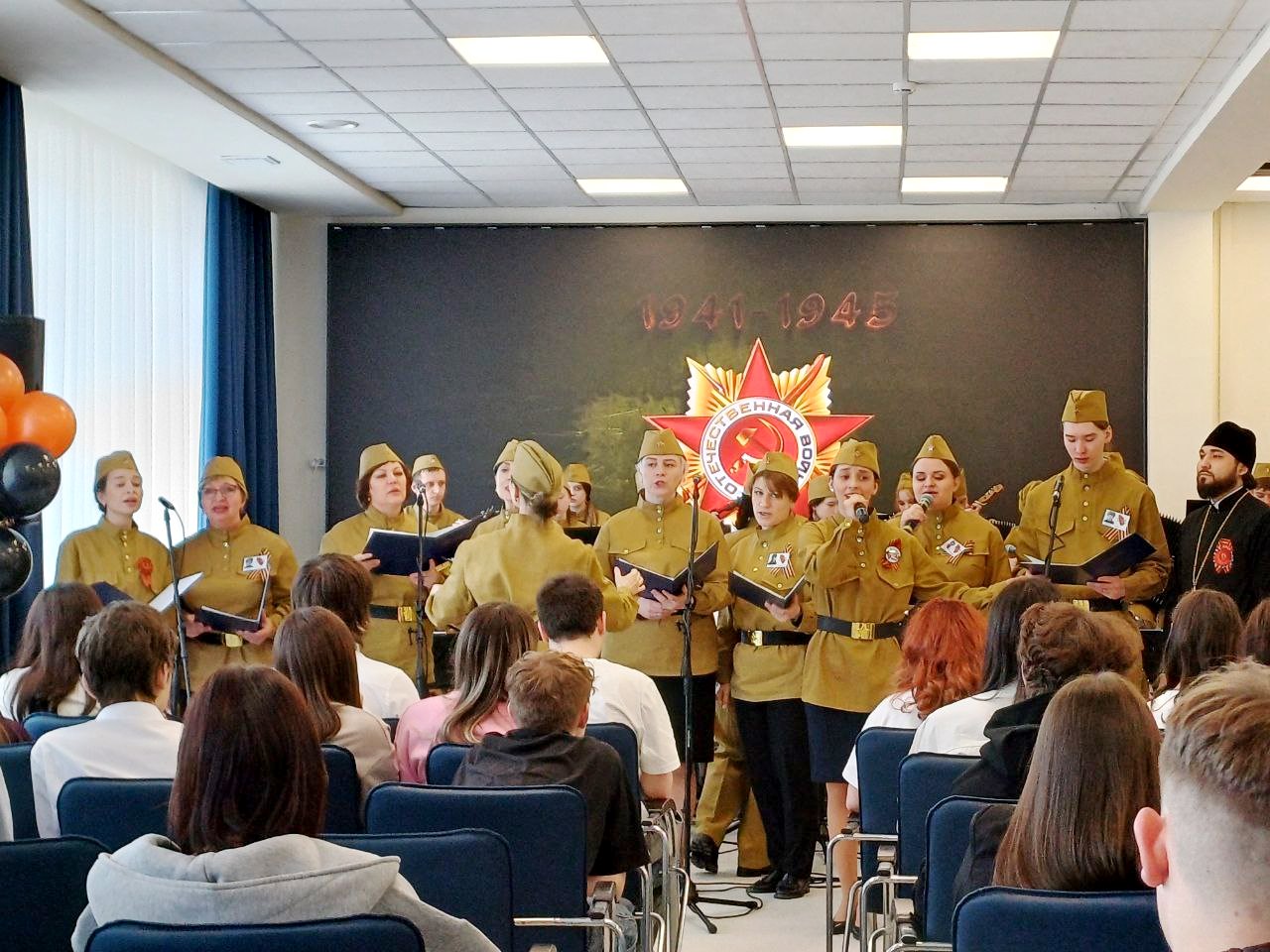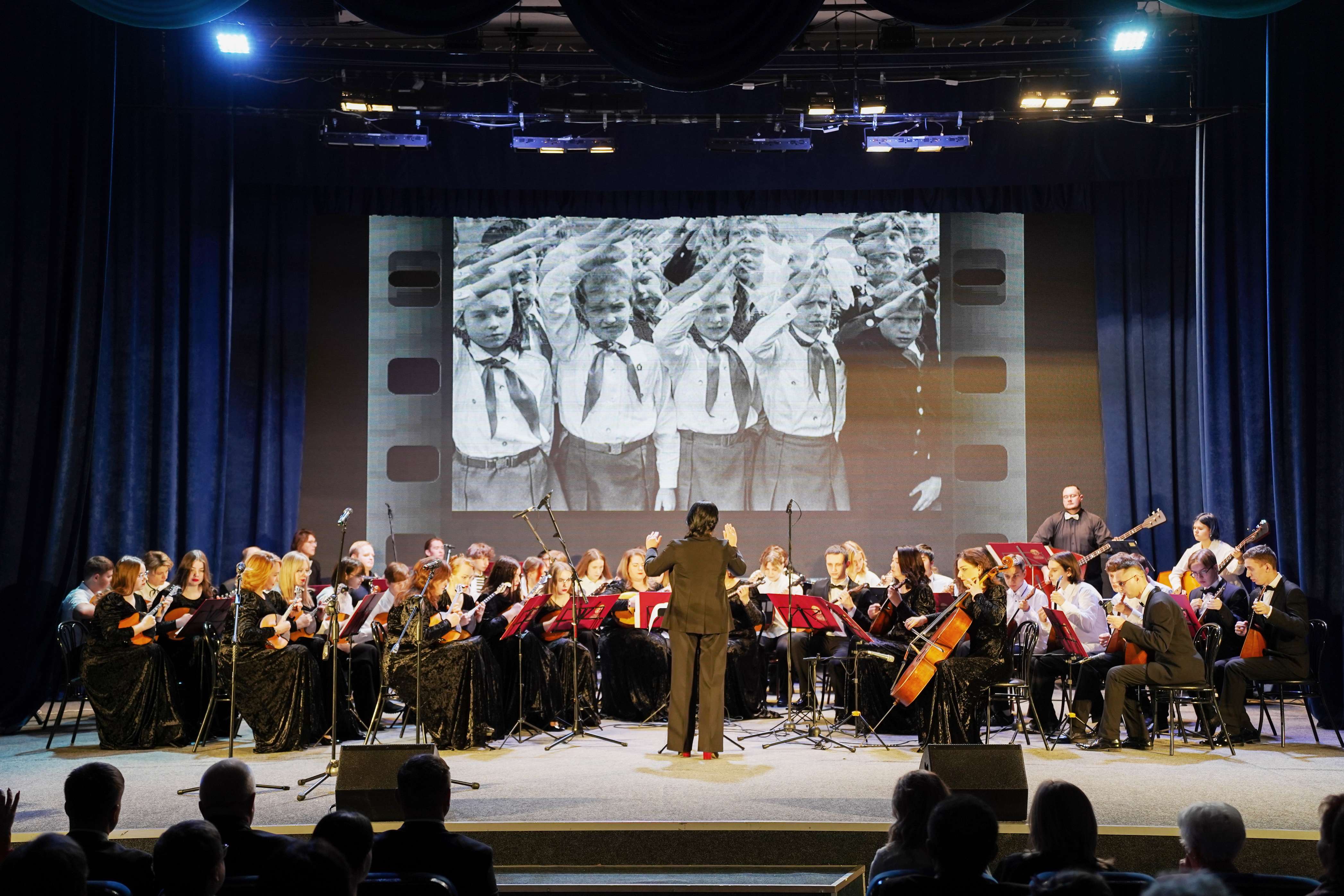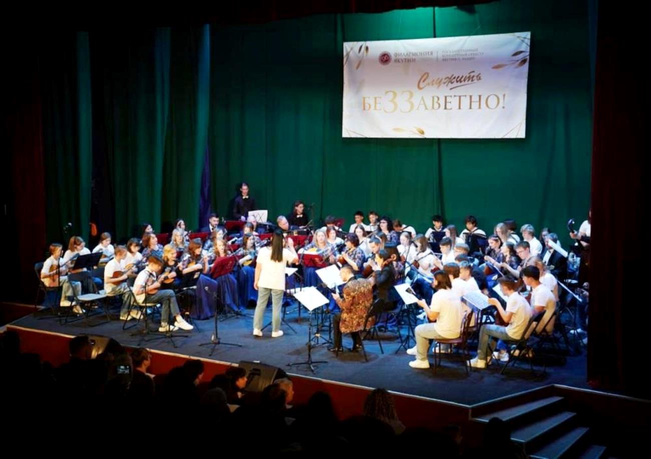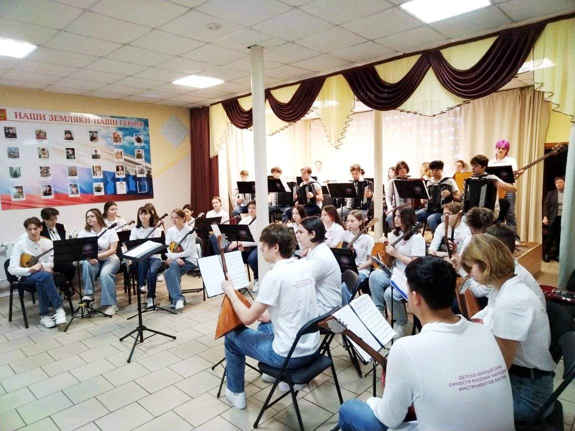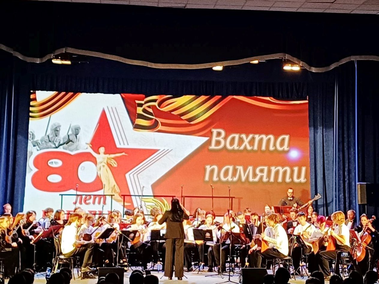В год 80-летия Великой Победы юные музыканты оркестра внесли свой вклад в празднование великой даты. «Вахта памяти» - так называлось общегородское мероприятие, на котором коллектив выступил совместно с хором ветеранов, вокальным ансамблем Филиала Якутского музыкального колледжа (училища) им. М.Н. Жиркова и артистами ГКОЯ. Такое мероприятие проводится ежегодно для учащихся старших классов всех школ города. Зал был полным, ребята слушали очень внимательно, и это было особо ценным.