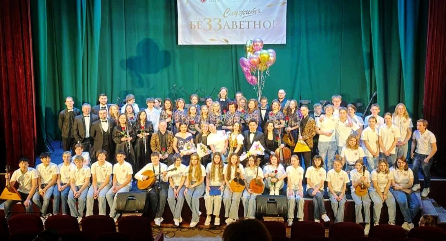 9 ноября в городском Дворце культуры прошёл концерт, посвящённый 100-летию Дома пионеров, преемницей которого стала средняя общеобразовательная школа с углублённым изучением отдельных предметов. В празднике, проходившем под знаком «Алых парусов», одного из самых романтичных произведений Александра Грина, Детско-юношескому оркестру народных инструментов Якутии была отведена одна из главных ролей – коллектив, совместно с артистами ГКОЯ, постоянно находясь на сцене, «озвучивал» все мероприятие.