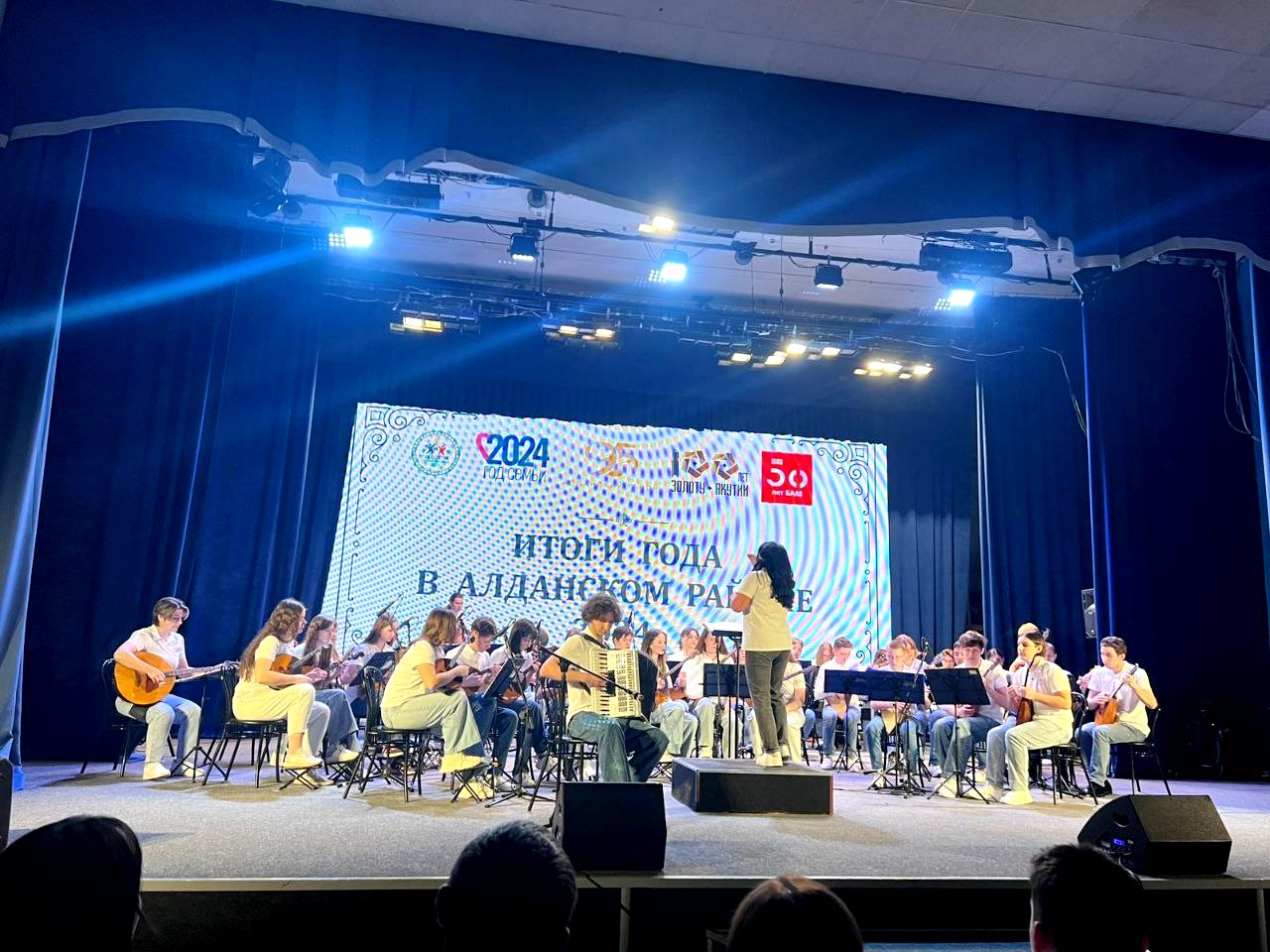20 января в Алданском центре культурного развития состоялось ежегодное мероприятие «Итоги года в Алданском районе». На торжественном вечере чествовали победителей и активистов 2024 года в различных номинациях: спортивных, профессиональных, творческих. И вновь на протяжении всего мероприятия на сцене – Детско-юношеский оркестр русских народных инструментов Якутии.