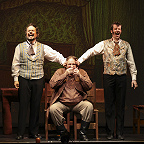 Пару далеко искать не ходили. «Женитьбу» с «Игроками» свел еще тот же Покровский, и почему, объяснимо: общего у них немало. В основе — гоголевские комедии, которые оба автора хотели передать слово в слово, но бросили эту затею по собственной воле: у одного исчерпался интерес к лабораторному опыту, второй, сочинив треть оперы, усомнился в реальности замысла — целое грозило растянуться часа на четыре. Оба произведения были дописаны до гоголевских финалов верными почитателями того и другого композитора, но ни Ипполитов-Иванов, ни поляк Мейер переиграть кумиров не смогли. Их «завершенки» в театральный обиход так и не вошли, а вот к оригиналам интерес не угасает, особенно если в календаре какая круглая дата. И даже тут нынешнему соединению опусов судьба благоволила: в прошлом году почтили Мусоргского, в следующем будем отмечать 120-летие со дня рождения Шостаковича.
