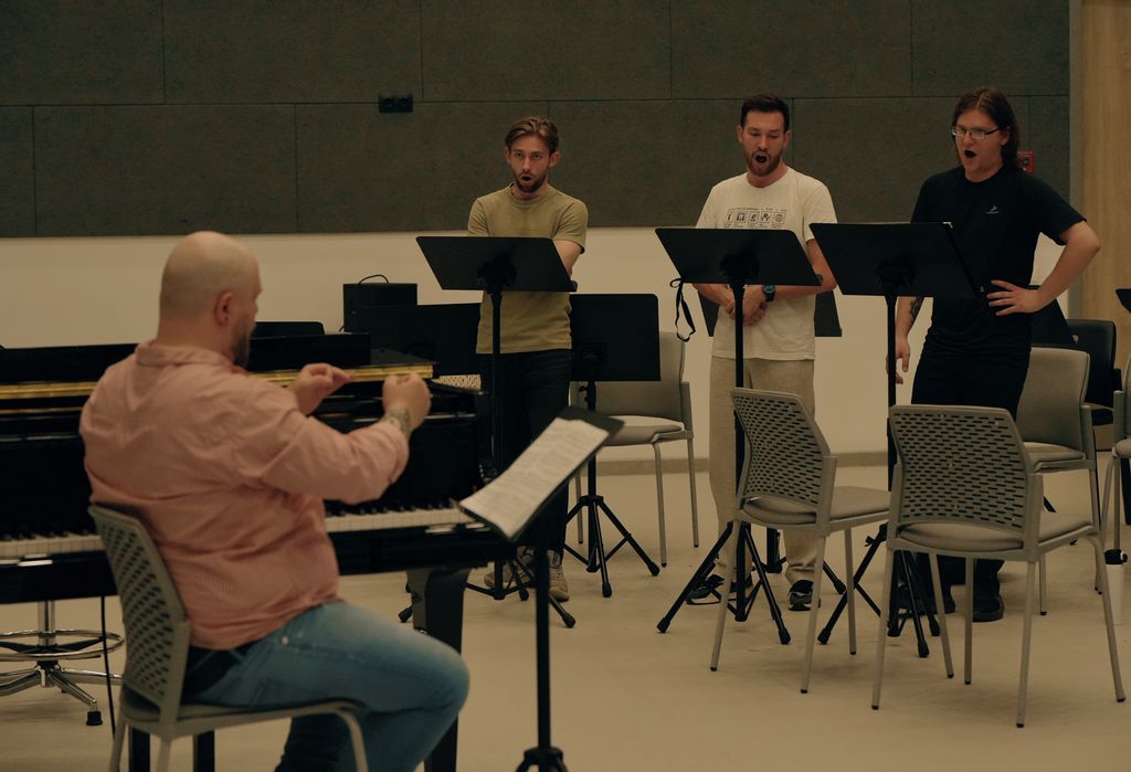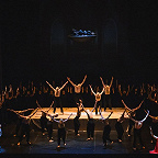 В небольшой «Прелюдии» хор с закрытым ртом пропел фрагмент из третьей части оратории «Феодора», где в оригинале хор первых христиан поет «O Love divine, thou Source of Fame» («Любовь свята, добра исток»). Он продолжился благостной арией «Augeletti, rusceletti» из оратории «Воскресение» – арией Марии Клеоповой, одной из жен-мироносиц, со словами «Птички, ручейки, что распевая и журча, возносят хвалу моему Господу, расскажите мне, где Он», прозвучавшей в исполнении Татьяны Бикмухаметовой как тихий голос из хора. Дальше разворачивался пышный венок-подношение юбиляру из арий, дуэтов и хоров, с тончайшим умыслом сплетенный Теодором Курентзисом и прихотливо срежиссированный Елизаветой Мороз. Режиссер с ватагой художников-постановщиков и хореографом Валентиной Луценко придумали историю с моделью для сборки, буквально складывая на глазах публики портрет Генделя в неоновом каркасе куба. Выделяя детали паззла то с глазом, то с ухом, то с рукой композитора, они словно бы собирали образ вместе с музыкой и танцами как самостийный мир – рукотворную вселенную, ту, которую создавал автор «Самсона» и «Мессии», «Роделинды» и «Феодоры», размышляя над борьбой язычества с христианством, чувства с долгом, жизни со смертью. Главными мотивами текстов арий, дуэтов и хоров были славословия Всевышнему, мольбы о пощаде или прощении, слезы раскаяния и покаяния, гимны милосердию и любви. Сам же Теодор Курентзис, славя деяния Генделя, демонстрировал и свои демиургические способности, знакомя публику с новым поколением российских певиц, решившихся освоить стиль генделевской музыки. Нет сомнений, что в иные времена в этом гала приняли бы участие зарубежные солисты (и, без сомнений, самые звездные, каких в Европе появилось много), но, увы, не сегодня. А потому надо срочно воспитать и грамотно окультурить своих. Российские молодые адепты Генделя демонстрировали пусть еще робкое, но все же относительно уверенное и очень правильное движение в сторону барочного вокала. Единственный контратенор среди сопрано и меццо-сопрано Андрей Немзер – давний приверженец музыкально-философской системы Курентзиса, а потому он выделялся на голову своим артистизмом и бешеной страстью. Но больше всего завораживал слух хор, звучание которого казалось невозможным, – так тонко, точно и слаженно, буквально душа в душу уже давно не артикулируют на грешной земле.