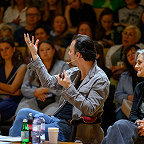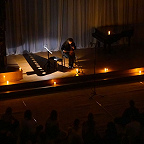Спустя несколько дней на фестивале, в том же ангаре, представили грандиозный проект «Вечернее собрание Марины Цветаевой»: петербургская актриса Янина Лакоба в роли поэта читала фрагменты из дневников, записных книжек, писем в режиме интерактива, заглядывая в глаза публике, задавая ей неудобные вопросы и ставя в безответный тупик. Лучше этой актрисы, кажется, и невозможно сегодня никого найти на роль Марины. Янина с ее бескомпромиссностью и отчаянностью жестов превзошла даже яркую Викторию Исакову, сыгравшую Цветаеву в фильме «Зеркала». Лакоба начала свою игру, когда зрители только рассаживались, – бродя среди них как неприкаянная; она же и погнала их криком «Уходите, ну, уходите же все», когда завершилась первая часть уже не просто вечернего, а самого настоящего ночного собрания (стрелки на часах показывали глубоко за полночь). Ее выходы перемежались музыкальными резонансами – хоровыми сочинениями на стихи Цветаевой Кирилла Архипова, Виктории Харкевич, Алексея Сюмака, Вангелино Курентзиса, Андреаса Мустукиса. При всей разнице индивидуальностей и стилей, цветаевская поэзия, кажется, произвела на композиторов какой-то общий, равный по силе эффект, в результате которого в музыке появились хрупкость, трепетность, ощущение зыби, марева, миража, жизни души «на ощупь». Стих Цветаевой подарил авторам мощные импульсы в поиске изощренной, а иногда и, напротив, мнимо безыскусной звукописи, напоминающей композиторские поиски Кайи Саариахо. Вторая часть «Вечернего собрания» для многих стала большой неожиданностью. Публика перешла на другую половину ангара, где попала в намного более жесткие, местами беспощадные «условия содержания» перформанса на тему тяжелой женской судьбы уже в XXI веке, оказавшись лицом к лицу не то с поломойками (кем была вынуждена работать Цветаева, как известно), не то с работницами швейного цеха исправительно-трудовой колонии и слушая их звуко- и словотворчество (текст произносился буквально сквозь зубы).