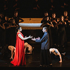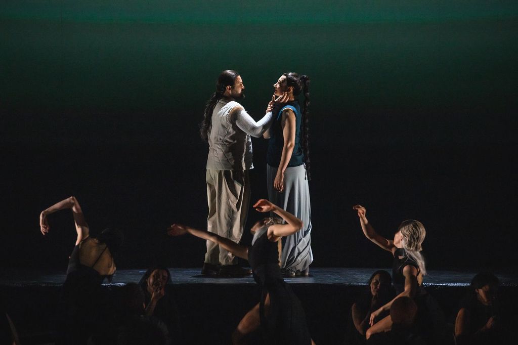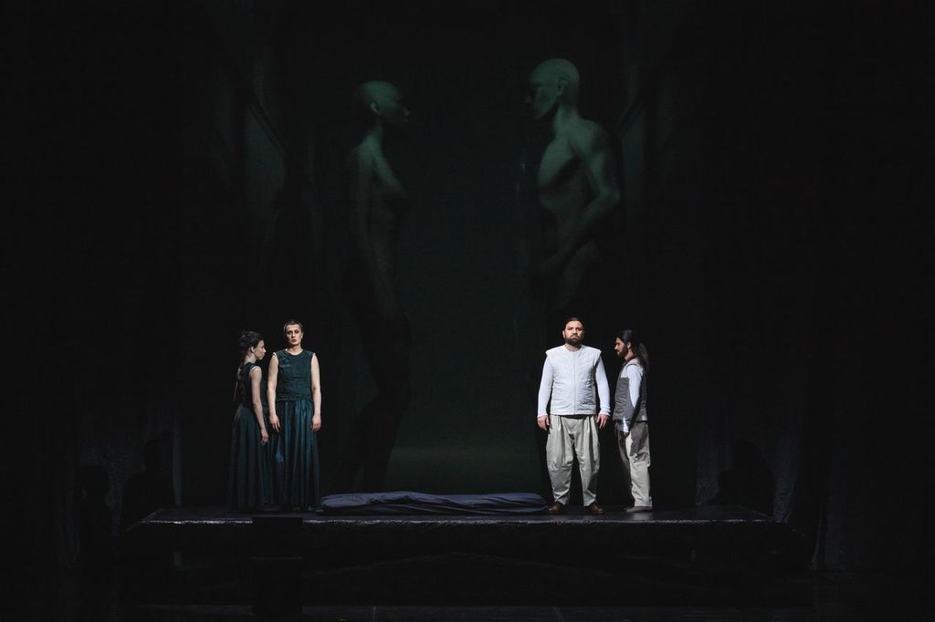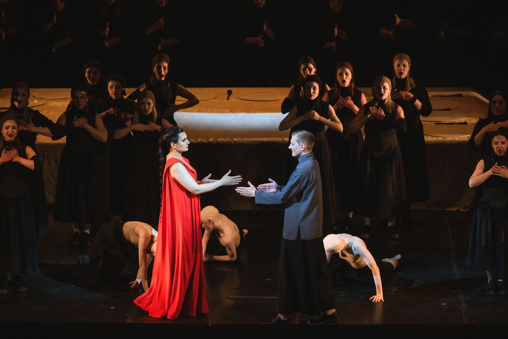 Наряду с множеством камерных программ в филармонии и Органном зале, мастер-классами, лекциями и кинопоказами «сетевые алгоритмы» включали в себя две большие оперные премьеры. Помимо «Самсона и Далилы» на сцене Пермской оперы, публика могла увидеть «Трехгрошовую оперу» в ДК им. Солдатова, но этот проект получился настолько неудачным, что писать о нем грустно. Режиссер Нина Воробьева, вероятно, поставленная в сложные условия подготовки спектакля, выбрала вариант полусценического исполнения, в котором пошла по пути наименьшего сопротивления, разделив каждую роль на двух артистов, – драматического актера и певца, чтобы одни без проблем играли разговорные сцены, а другие без проблем пели. Это не могло присниться Брехту в самом страшном сне, ведь он вместе с Вайлем писал свои зонги на особый тип интонирования и пения. «Самсон и Далила» стала режиссерским дебютом Анны Гусевой. Библейскую историю она увидела в пространстве мифа, простершего свои смысловые границы от Ветхого завета до разгула искусственного интеллекта. На стыке архаики и футурологии строился и визуальный ряд, в создании которого приняла участие громадная группа молодых творцов с ассистентами и ассистентами ассистентов. Гусева выступила лишь режиссером, отдав право рисовать картинку художнику-постановщику и видеохудожнику Юлии Орловой, моделировать костюмы – Анне Чистовой, хореографией заниматься – Анастасии Пешковой. Внешний облик спектакля обрел черты сновидения, в котором угадывались символистские мотивы, включая эстетику «Острова мертвых» Беклина, а в момент роковой встречи Самсона и Далилы на видео вдруг появились существа-аватары, напомнившие мрачный, не сулящий ничего хорошего мир героев фильма Ридли Скотта «Прометей». Танцевальность, пронизавшая всю постановку, не могла не вызвать ассоциаций со стилистикой Саши Вальц, работавшей, в частности, над «Тангейзером» Вагнера в Берлинской государственной опере (вместе с Даниэлем Баренбоймом). Сильно и страшно была решена «Вакханалия» финала: не осталось сомнений, что итог оргии в честь победы над Самсоном – не разрушение храма, а ритуальный суицид, ставший кульминацией дикого, исступленного пляса. Впечатляющая визуальная сторона новой версии «Самсона», к сожалению, не смогла скрыть слабости стороны вокальной, где не хватало ни роскошного меццо-сопрано Далилы, ни героического голоса Самсона, хотя оркестр под управлением Владимира Ткаченко демонстрировал ориентальные пышности партитуры Сен-Санса с повышенным пафосом.