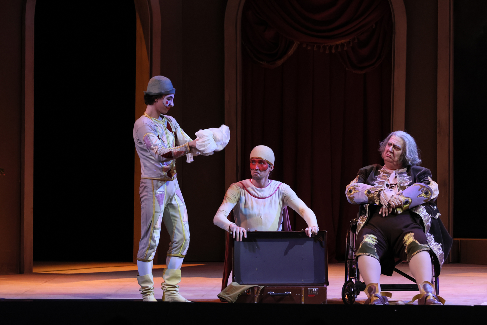 Вакантное место Пласидо Доминго в Мариинском театре уверенно, шаг за шагом занимает 55-летний итальянский баритон Амброджио Маэстри (во всяком случае, если судить по частоте его визитов и выступлений). Выдающийся певец-актер, Аброджио в минувшем сезоне пленил петербуржцев своим Фальстафом (опера Верди была записана для лейбла «Мариинский», и, вероятно, в обозримом будущем эта запись найдет поклонников-покупателей). В «Фальстафе» Маэстри равных нет: он играет будто самого себя. То же происходит и в опере Доницетти «Дон Паскуале», где он поет так же безупречно и где так же актерски органичен, а уж тем более в таком режиссерски слабеньком спектакле, как этот, Маэстри — царь и бог. Режиссер Илья Устьянцев, конечно, сделал попытку поиграть в как бы старинный театр — в красивый, «шкатулочный» спектакль «как раньше», вписав в текст постановки даже пантомимных персонажей в духе комедии дель арте. Но все здесь не идет дальше прикладной иллюстрационной функции — никаких подтекстов режиссура не проявила. При очень тусклом свете, который, возможно, был призван показать, как плохо жилось при свечах без нормального электричества театралам далекой поры, все режиссерские линии выглядели крайне слабо, по-ученически. Режиссерская рука не чувствовалась ни в одном из обитателей старого дома Дона Паскуале.