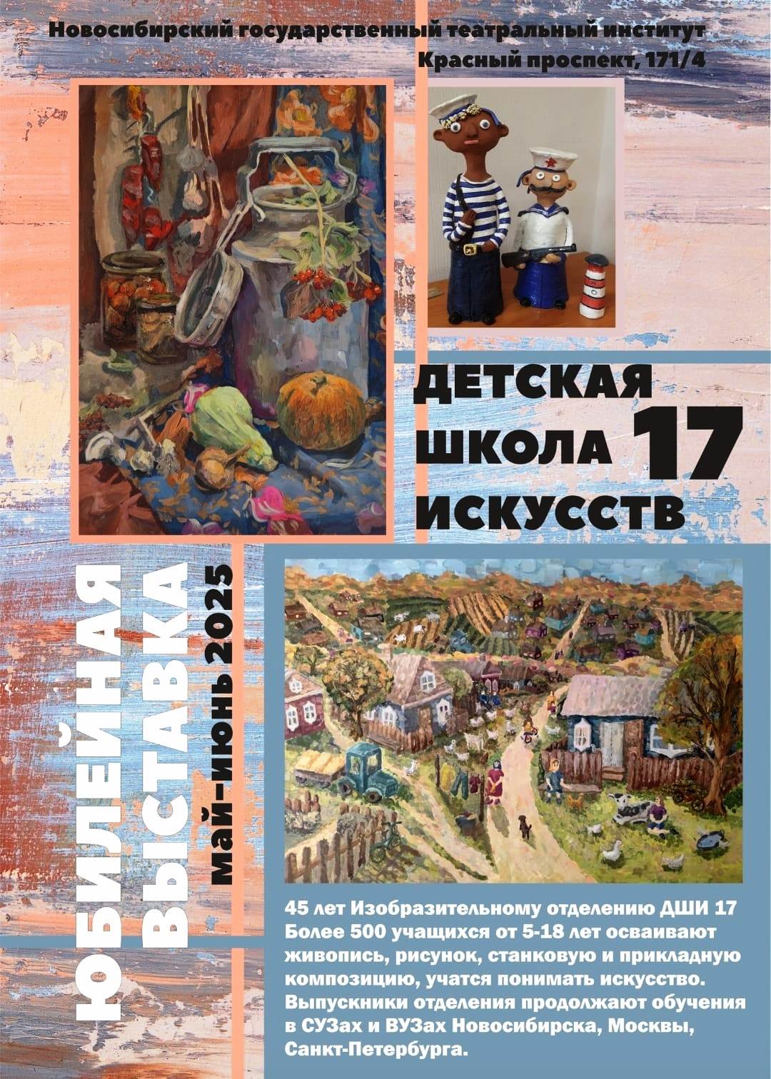 Художники ведут активную выставочную деятельность – ежегодно они выставляют свои работы на площадках Театрального института, Института искусств г. Новосибирска. В 2024 ДШИ № 17 организовала объединенную городскую выставку, в которой приняли участие юные художники из 12 школ Новосибирска. Эта сборная выставка в Институте искусств стала большим событием, подарив ребятам и их преподавателям возможность пообщаться с коллегами, увидеть, что делают в других школах, обменяться опытом, а главное - получить незабываемые впечатления и сгенерировать новые творческие идеи. Лучшие обучающиеся отделения ежегодно получают приглашения на профильные смены в региональные и всероссийские ресурсные центры. Аня Дубинина (отделение изобразительного искусства) на конкурентной основе получила право провести три творческие смены в образовательном центре «Сириус».