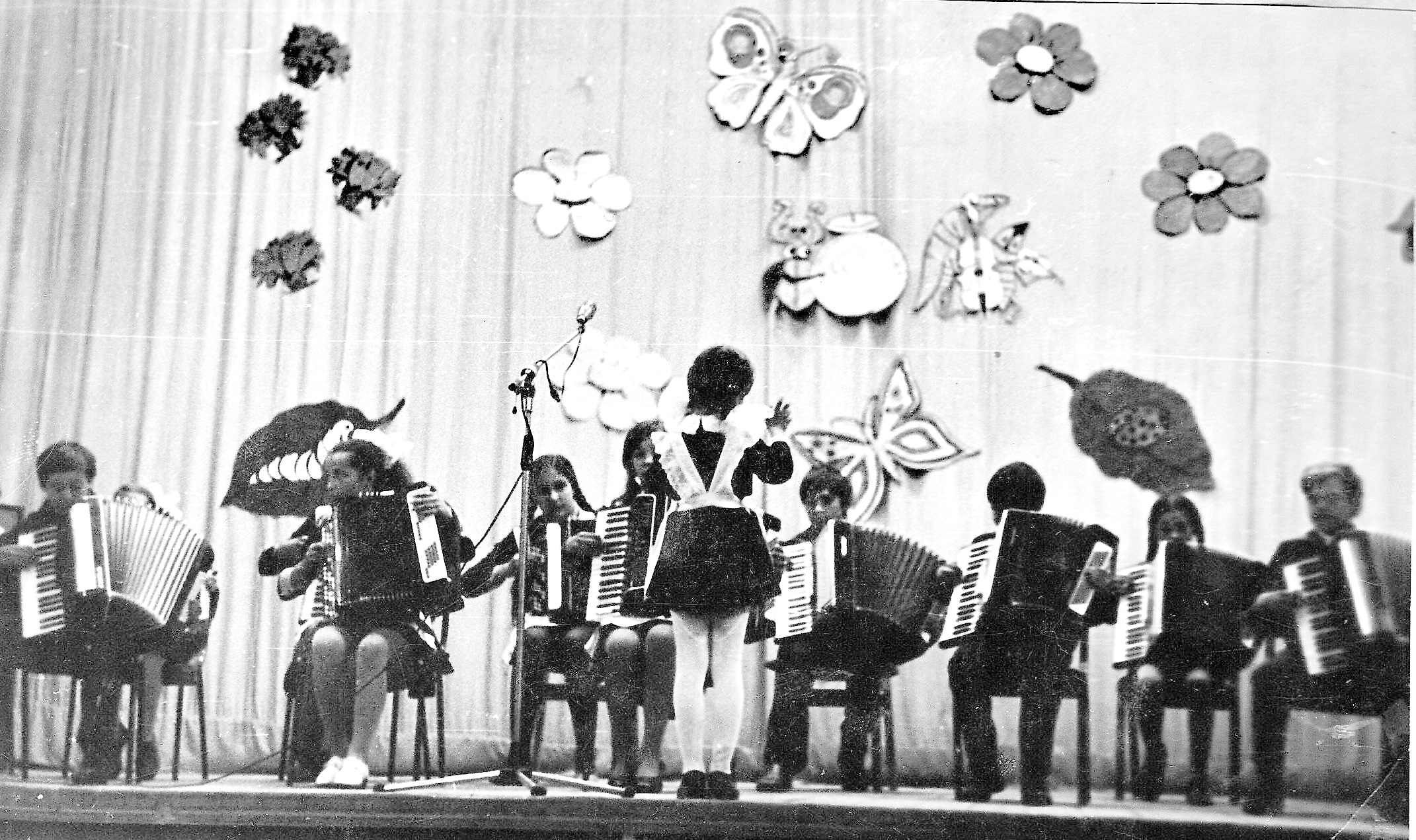 Первые 17 учеников, дети строителей, приступили к занятиям в музыкальной школе, располагавшейся в вагончике, и обучались игре на баяне и аккордеоне. Первый преподаватель Сергей Александрович Давыдов принял на себя все сложности начальной организации учебного процесса. В 1976 году школе было выделено сборно-щитовое здание площадью 440 кв.м., и уже 1 сентября 114 учащихся на трех отделениях теперь уже школы искусств: музыкальном (баян, аккордеон, фортепиано, гитара), хореографическом и художественном, приступили к занятиям. Пришлось потрудиться, чтобы в условиях удаленности от населенных пунктов и отсутствия дорог укомплектовать школу: появились просторный хореографический класс с зеркалами и станками, мольберты и натюрмортный фонд для художников, инструменты и нотная литература для музыкантов.