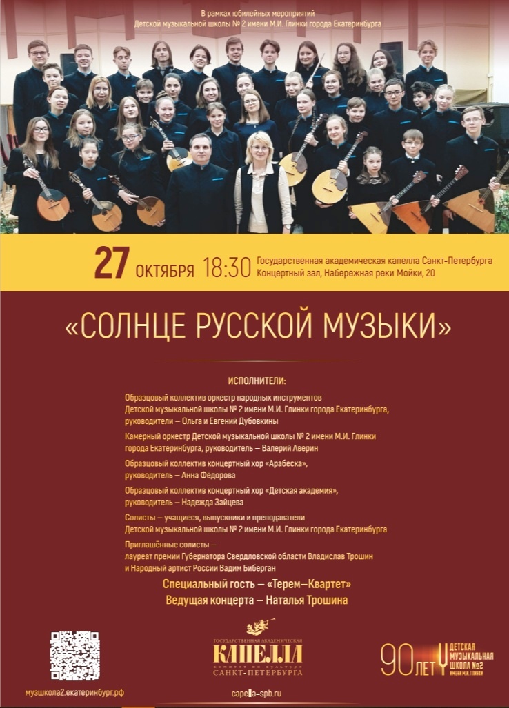 Для ДМШ №2 им. М.И. Глинки г. Екатеринбурга возможность выступить на одной из лучших сценических площадок Северной столицы, в историческом зале Капеллы – большая честь и ответственность. А также факт заслуженного признания успехов школы и закономерный результат ее почти векового пути.