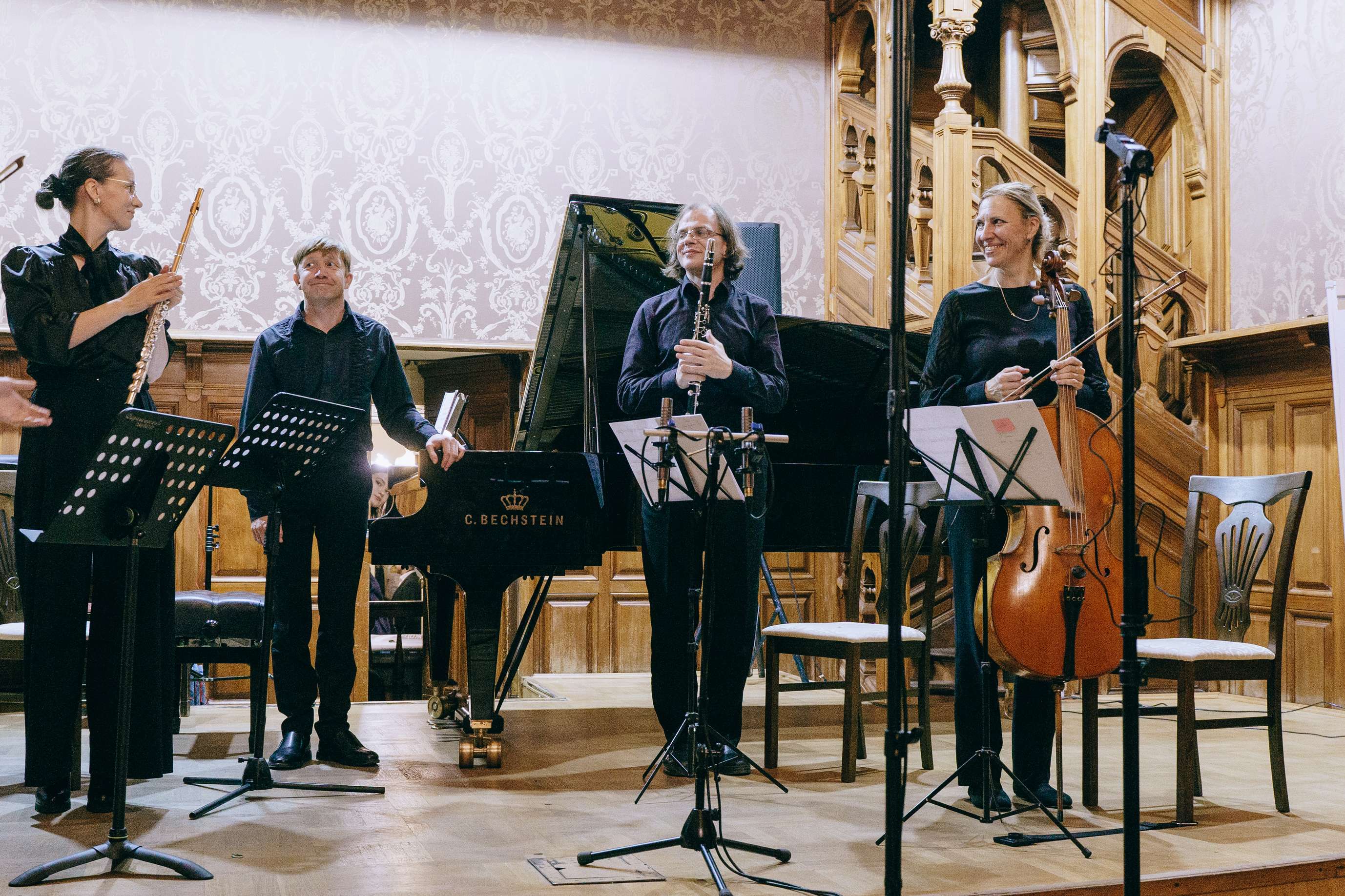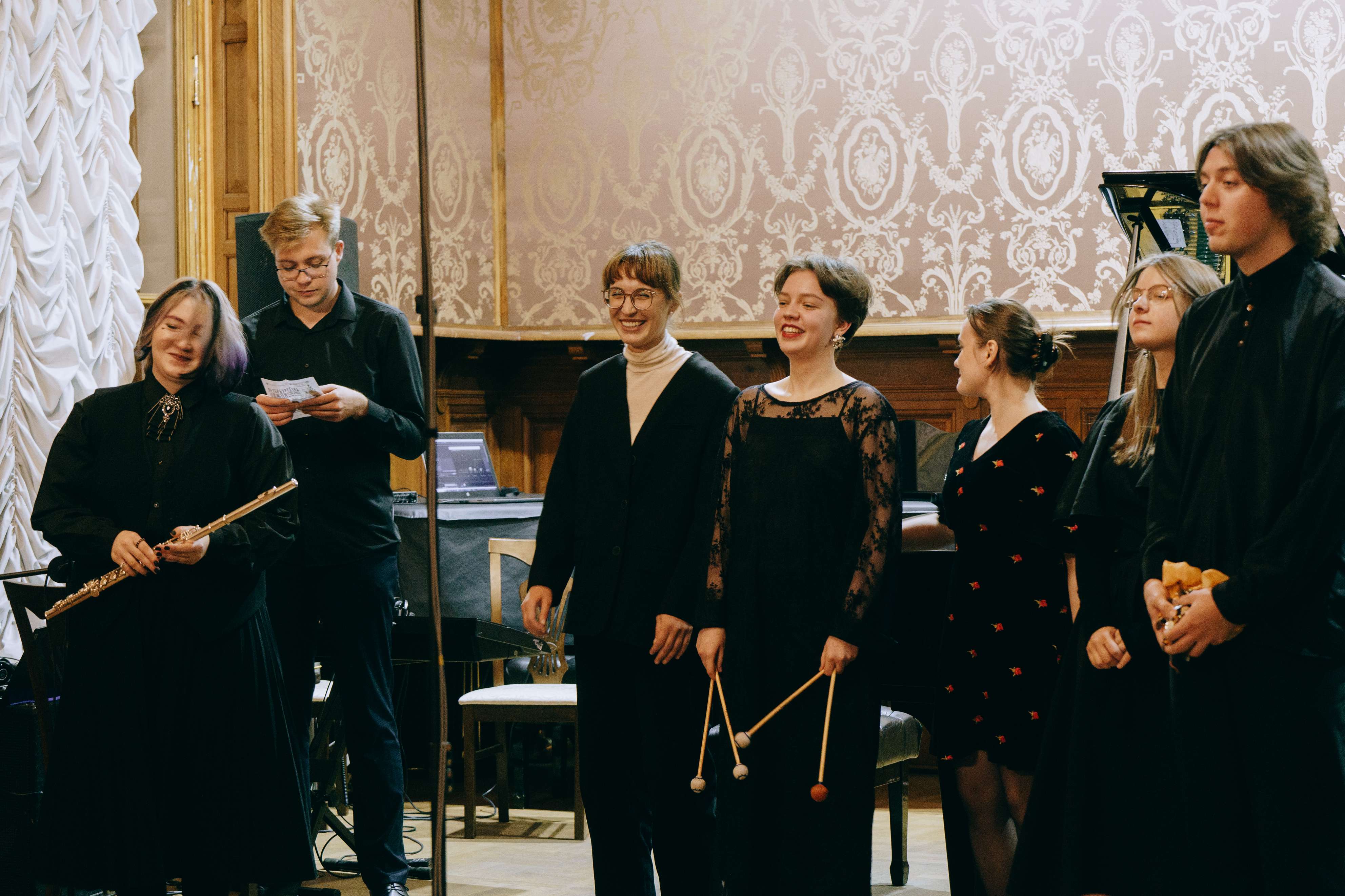 Открывал фестиваль, казалось бы, сугубо камерный концерт. Четыре произведения для скрипки и фортепиано, прозвучавшие в сравнительно небольшом пространстве Дубовой гостиной Дома композиторов. Скрипачка Марианна Васильева и пианистка Дарья Чайковская назвали свою программу «По ту сторону тишины» – их шаг со стороны тишины на сторону музыки стал весомой прелюдией к череде весьма разнообразных событий. Культура – и культурность. Замечательная культурность исполнения, которая задала высокий уровень фестиваля с первых его шагов. Преемственность ленинградской-петербургской композиторской культуры: прозвучали Мясковский и Шостакович, стоявшие у истоков этой культуры в ее послереволюционной фазе, а также Танонов и Хрущёва, чье творчество является знаковым для ее современного состояния.