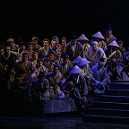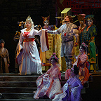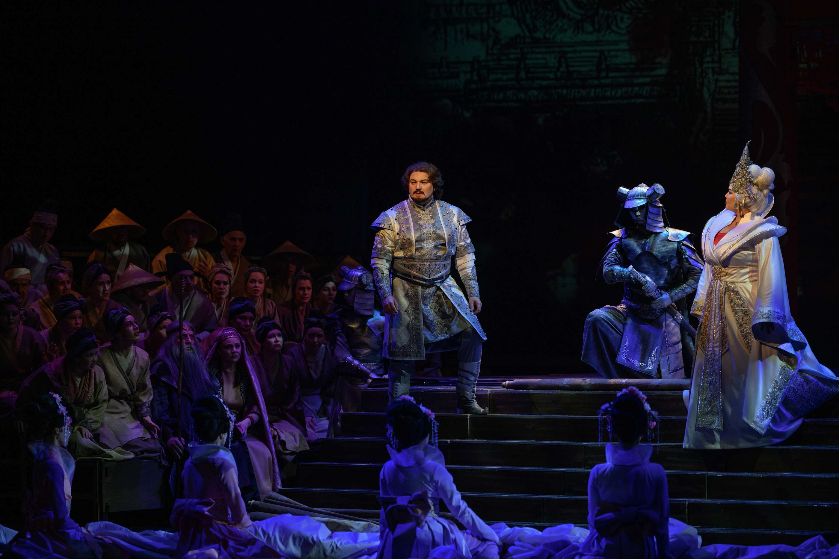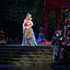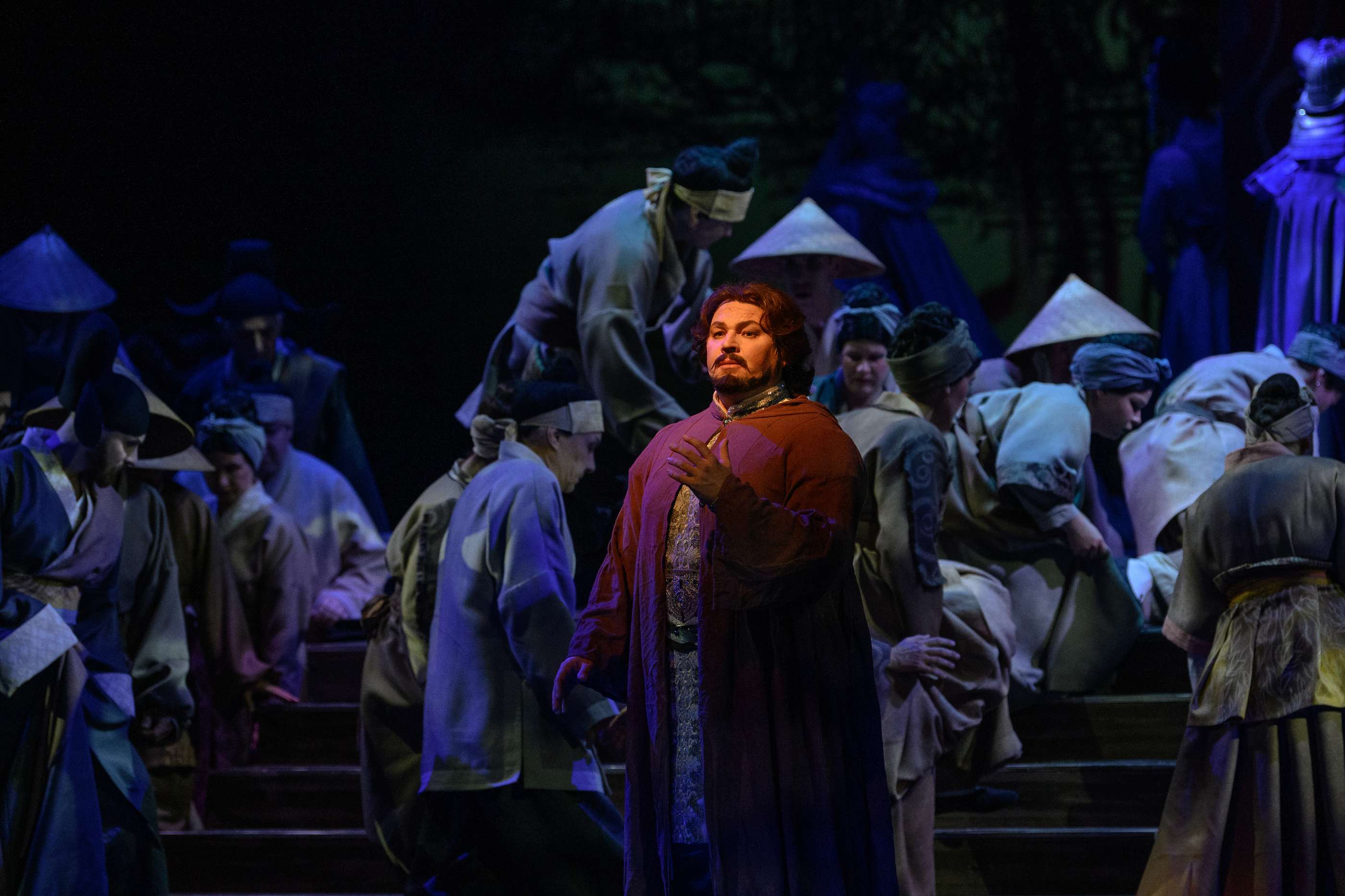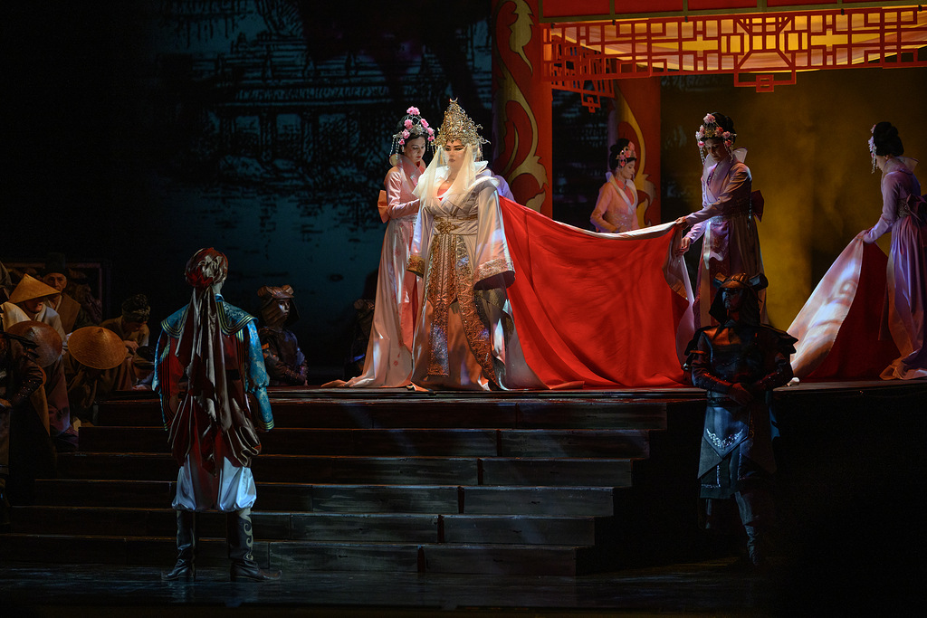 В продолжение разговора о достоинствах премьеры продолжится и перечень приятных сюрпризов. Третий из них – готовность труппы к музыкальному языку Пуччини. Казалось бы, ничего удивительного – в театре не первый год идут «Мадам Баттерфляй» и «Тоска», было на чем освоиться, однако «Турандот» существенно отличается от прочих опер мастера, тут его письмо становится еще более изощренным, улавливающим веяния экспрессионизма. Донести все детали без потерь не так-то просто, но солисты Елена Лодыгина (Лиу), Олег Диденко (Тимур) и Андрей Ковалев (Пинг) явили высокое мастерство, продемонстрировав итальянскую полнокровную манеру звуковедения, красоту тембров, точность фразировки и цепляющую выразительность вокализации в целом.