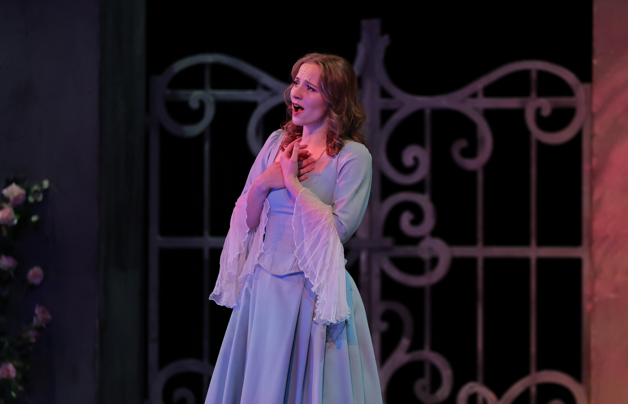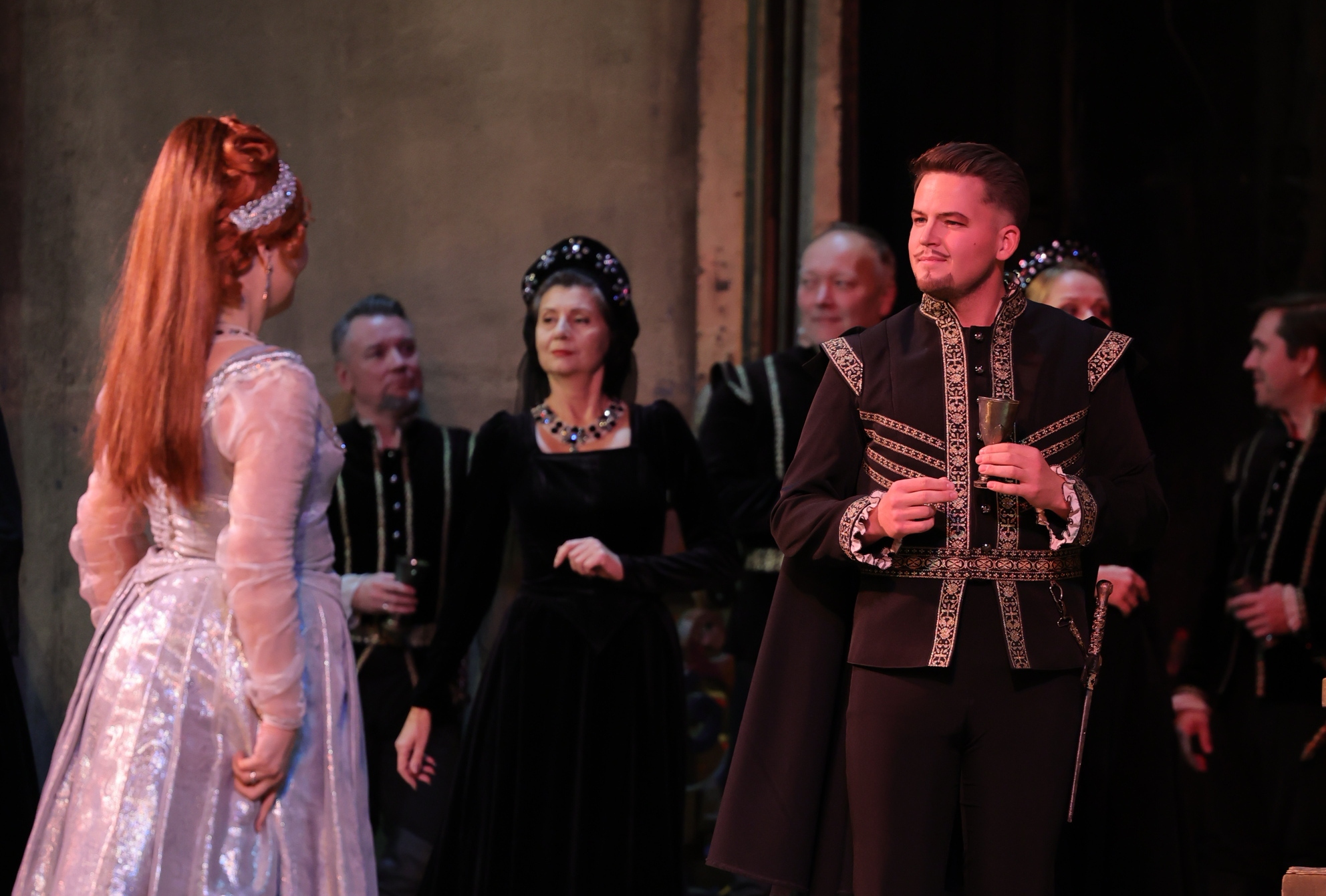 Ноябрьский показ – дебют в заглавной партии Анастасии Луриковой, ученицы Людмилы Колос, прославленной белорусской колоратуры 1970-80-х, чей юбилей театр отмечал именно этим спектаклем. Приятный и техничный, легкий голос молодой певицы справляется со всеми трудностями партии – лишь в трагедийных эпизодах ему явно не хватает драматической краски, но такова общая проблема колоратур в этом материале. Первый акт Лурикова пока исполняет, как хорошо выученный урок (что простительно для дебютантки), однако по ходу спектакля обживается на сцене, и во второй половине оперы уже можно говорить об образе, не только о вокале.