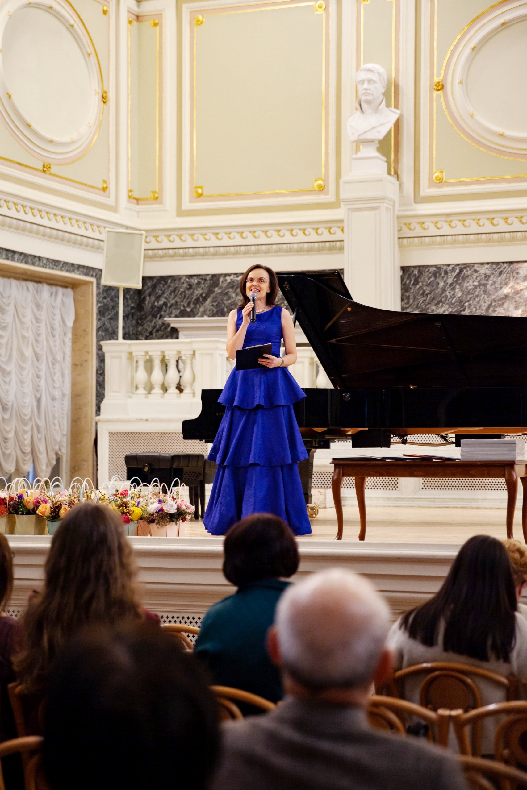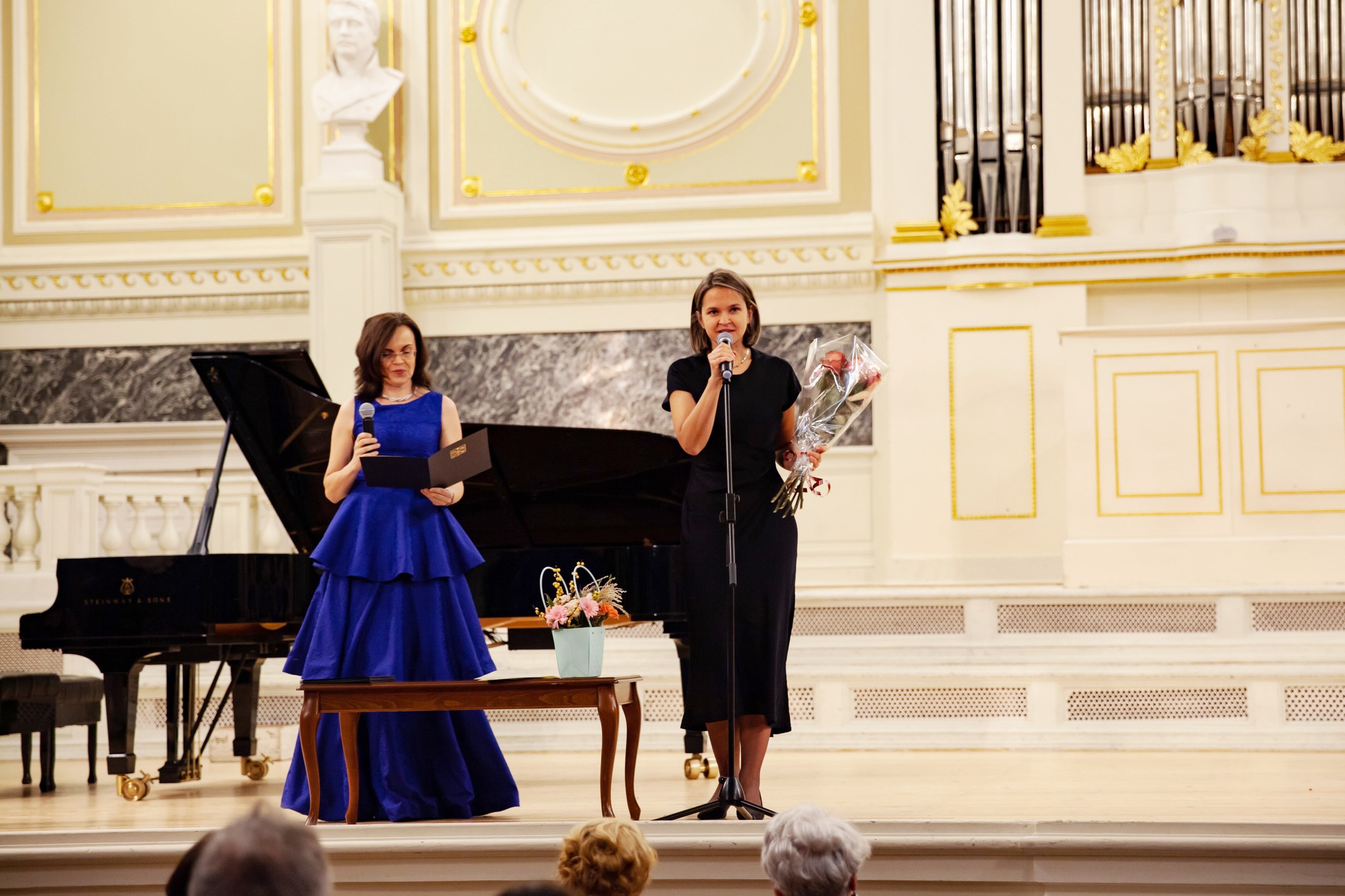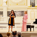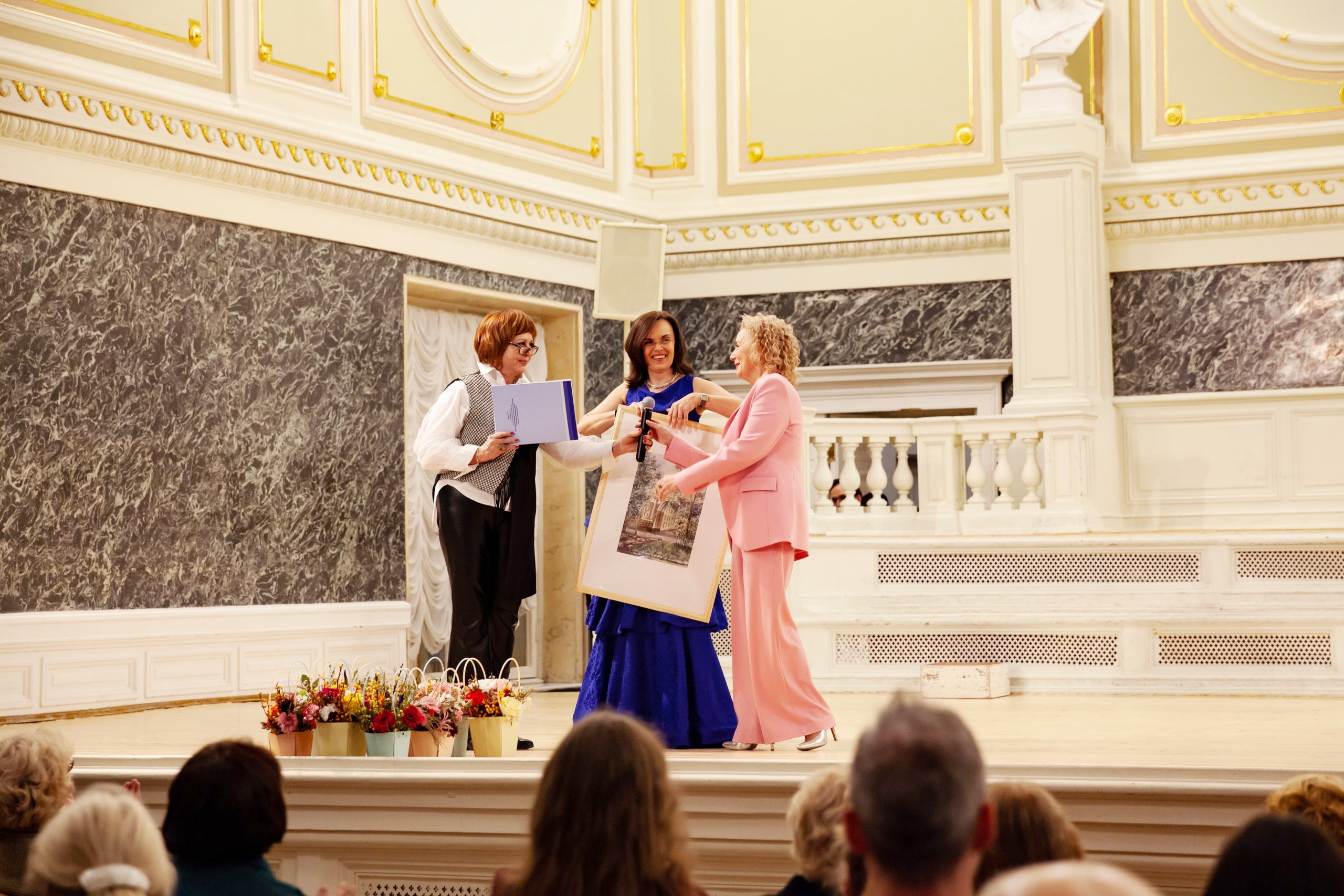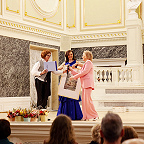 Далее, по давней традиции юбилейных концертов, последовала торжественная часть – приветственное слово и.о. директора ДМШ №7 Валерии Николаевны Скудневой, затем вручение грамот, благодарностей и благодарственных писем от губернатора Санкт-Петербурга, Комитета по культуре и администрации Выборгского района. Преподавателей и сотрудников награждали начальник сектора образования в сфере культуры Комитета по культуре Санкт-Петербурга Наталия Леонидовна Козырева и начальник отдела культуры администрации Выборгского района Санкт-Петербурга Елена Васильевна Корбан.
