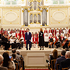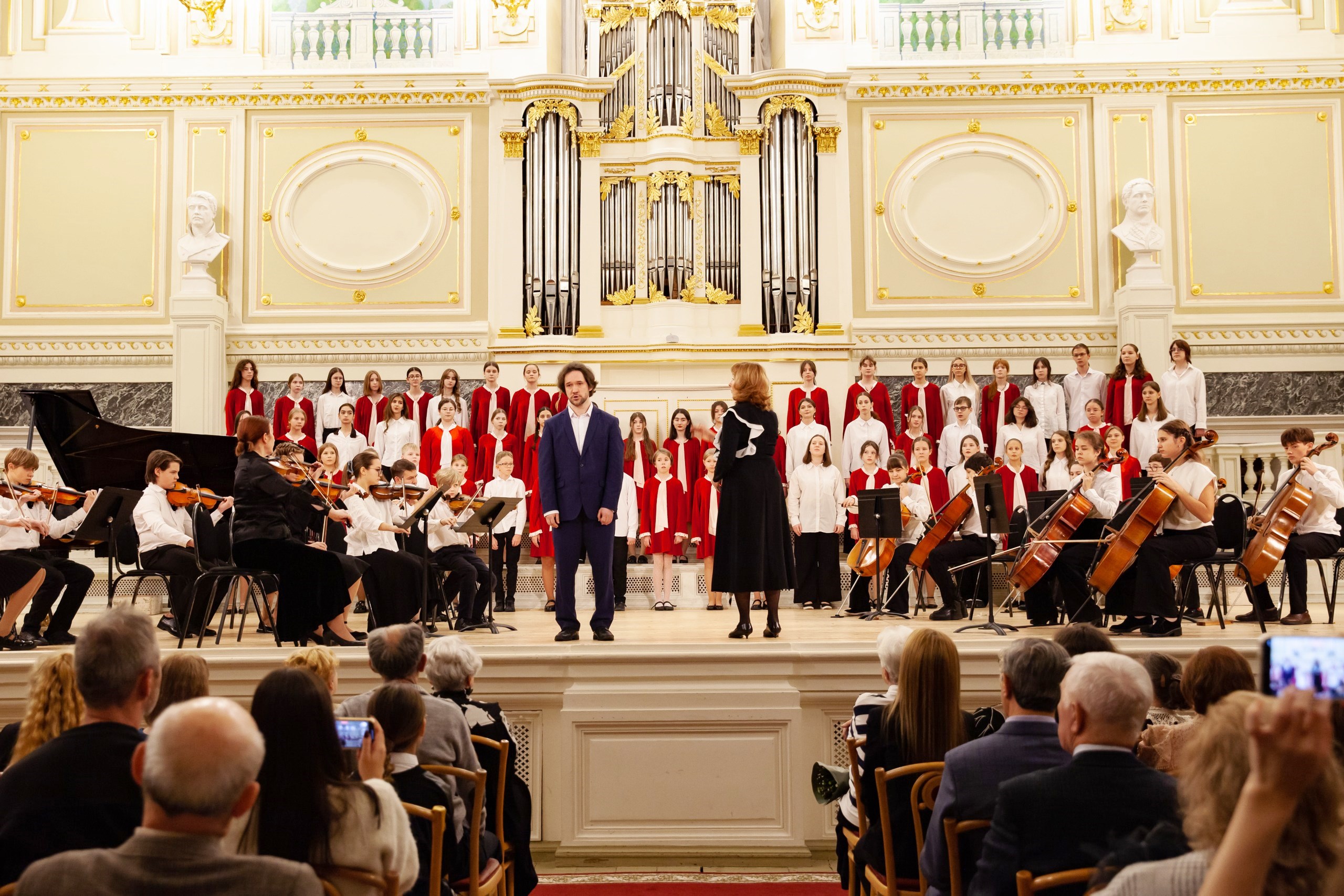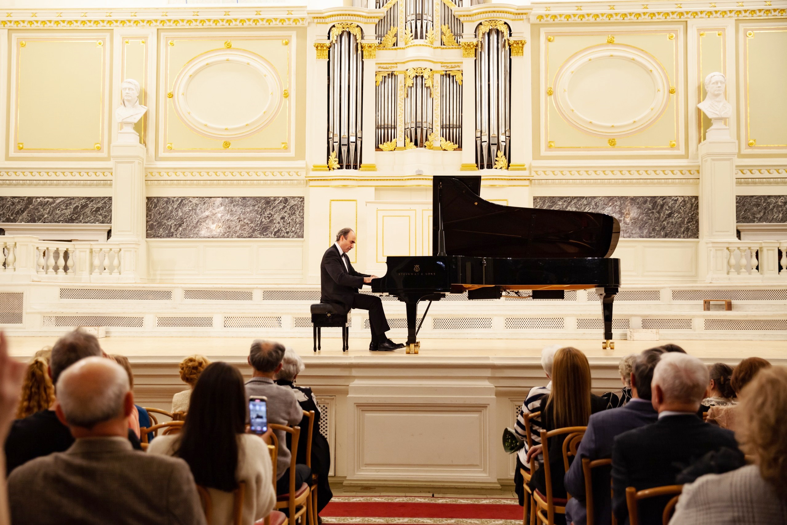 На концерте было произнесено много слов о традициях и преемственности. Имена Чайковского и Рахманинова – это история преемственности, уважения и ценности друг друга. Экспрессивные произведения этих композиторов – «позднего» Чайковского – «Andante maestoso» из балета «Щелкунчик» в обработке М.Плетнева и «раннего» Рахманинова – Прелюдию ор.23 № 5 соль-минор в качестве подарка для юбилейного концерта выбрал выпускник, которым гордится «Семёрка» – Олег Вайнштейн. Обе пьесы прозвучали с едва заметной паузой. Не оставляя места для аплодисментов, как часто это делают солисты, чтобы «не разбивать эмоциями» настрой, знаменитый петербургский пианист закончил выступление в полной тишине, но лишь на секунду – зал взорвался продолжительными благодарными аплодисментами. Это было выступление, полное вдохновения и самоотдачи. Заслуженный артист РФ, доцент кафедры специального фортепиано СПбГК им. Н.А. Римского-Корсакова, лауреат международных конкурсов, выпускник ДМШ №7 класса Е.А. Смирновой, Олег Вайнштейн поддерживает тесные связи с родной школой, регулярно проводя мастер-классы с учениками фортепианного отдела.