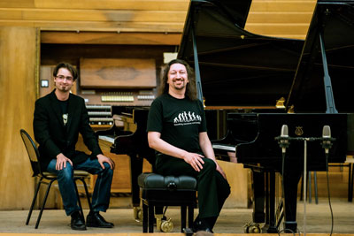 Они умеют создавать музыку непосредственно на сцене. Резонируя друг с другом, они словно образуют единую четырехручную сущность. Дуэт предлагает работу с разными драматургическими логиками, моделями стилей, слепками творческих почерков, сколками ритмов, фактур, мотивов. Они различны в пристрастии к статическому и динамическому, процессуальному и фрагментарному (вообще, если покопаться, эти два музыканта очень разные!). Но, находя общие «точки» решения токкатного, импрессионистского, фантазийного, жанрово-этнического, импровизаторы заставляют вслушиваться в многоэтапное развертывание их диалога.