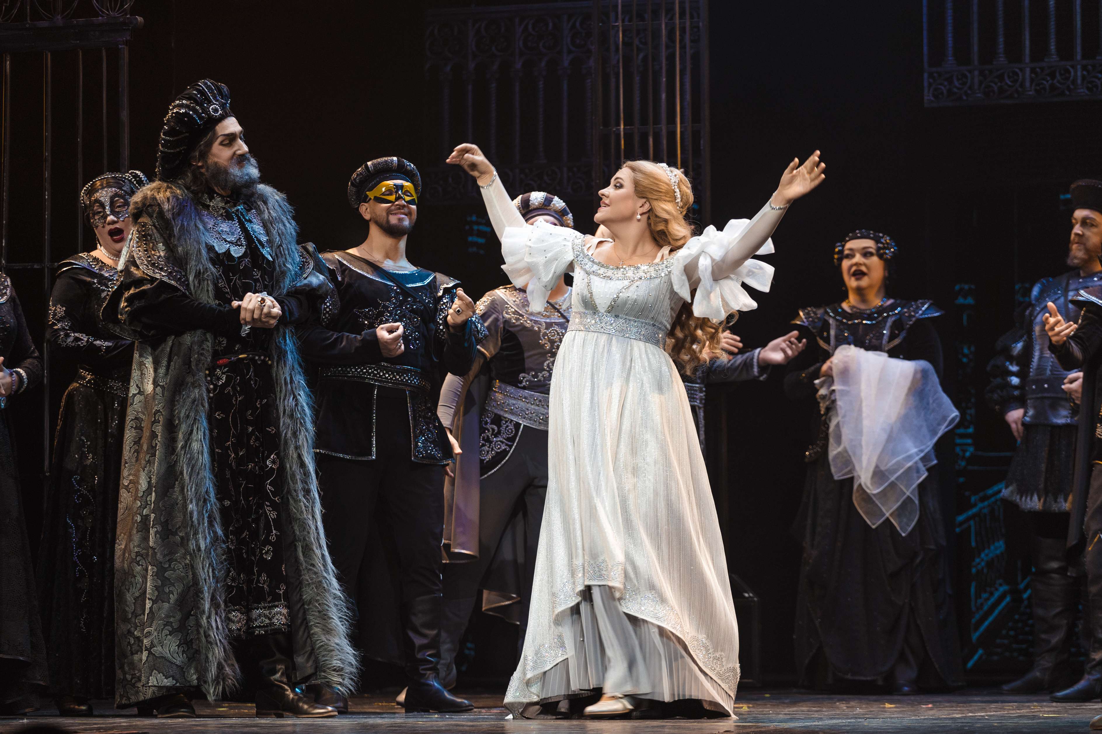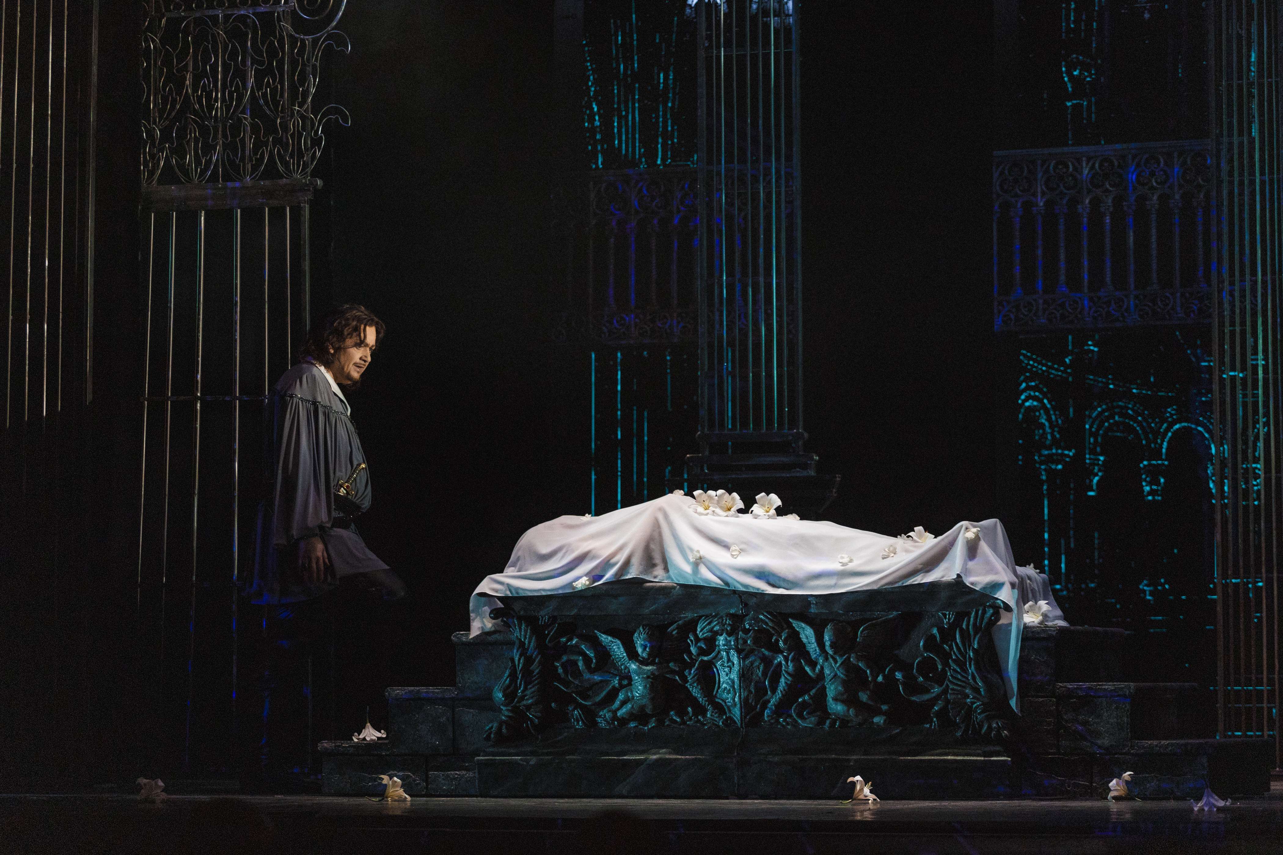 Александров, мастер, работающий в самых разных эстетических парадигмах и режиссерских техниках, на сей раз предложил красивую сказку – без каких бы то ни было аллюзий на современность и стремления актуализировать сюжет. Опера о несчастных веронских любовниках предстала исторической костюмной драмой, полной изящества и эстетической выдержки.