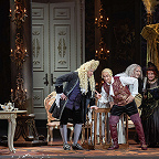 Главная суть этой работы, конечно, в подробной работе с артистами, в создании образов и в идеях, заложенных в опере и расшифрованных постановщиком. Так, первая картина, где Фигаро меряет метраж комнаты для установки кровати, происходит в несколько обшарпанном помещении с ванной в центре — видимо, патрон отвел чете новобрачных бывшее банное место замка (оставлять за скобками социальный исток комедии Бомарше Александров не намерен). Режиссер позволяет себе и другую вольность — переносит действие из Испании в предреволюционную Францию. Уже на увертюре по сцене бегают санкюлоты во фригийских колпаках и с революционными плюмажами (они и позже будут не раз мимически присутствовать, словно одергивая Графа и давая ему понять, что историческое время — не на его стороне), а в одной из хоровых сцен в открытом окне замка размахивают республиканским триколором.